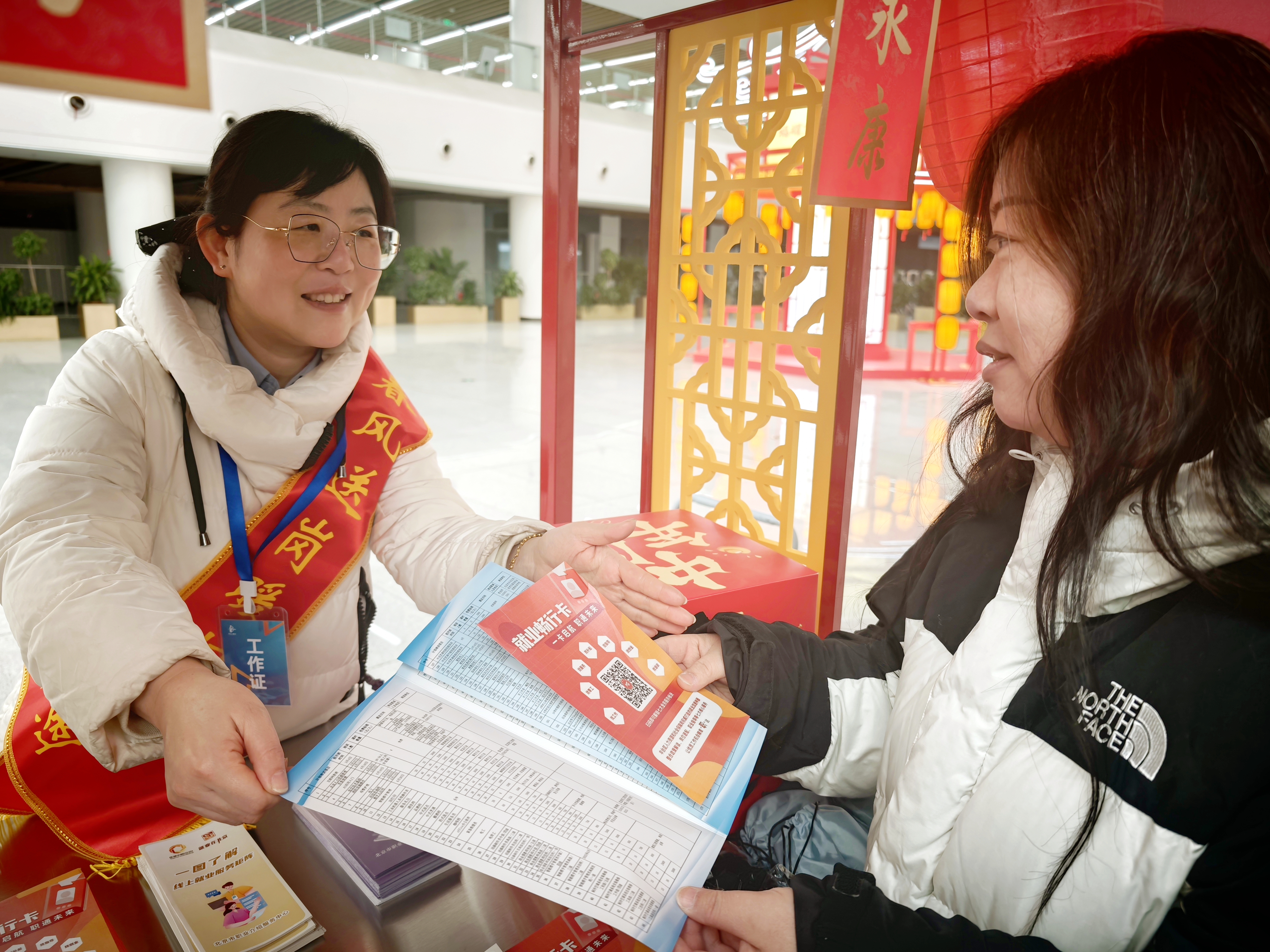 活动现场,工作人员化身“就业向导”,为过往旅客递上宣传折页、就业畅行卡及暖心礼包。“我们提前梳理了餐饮、家政、零售等适配性强的岗位清单,通过‘现场+线上’的方式,让求职者扫码就能查看详细岗位信息,实现‘即来即查、查聘高效’。”流动就业服务站点工作人员介绍道。