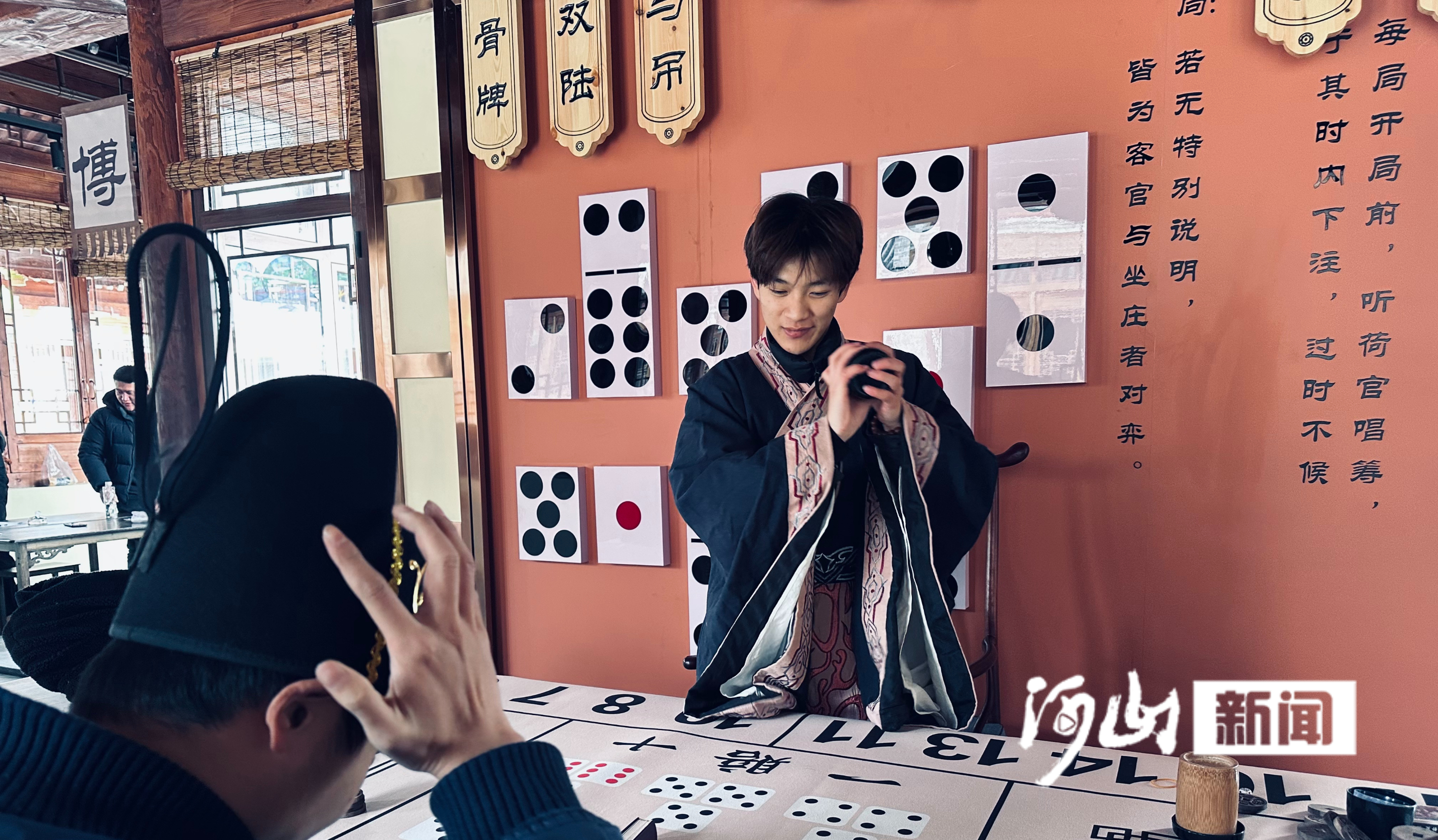 城内长街,是一个流动的叙事空间。在“智慧书局”前,扮演“老夫子”的演员陈建州正从容开门迎客。“题库万全,专候智者。”他捋须一笑,气定神闲:“三局两胜,赢了我,便有万元银票,可在城内畅行消费。各位,何不来博个新年好彩头?”言语间,一个兼具智趣与挑战的沉浸式关卡已然浮现。