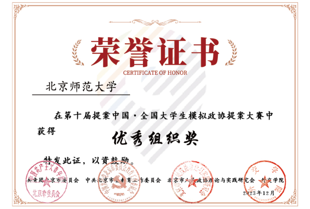 北师大获评第十届提案中国·全国大学生模拟政协提案大赛“优秀组织奖”