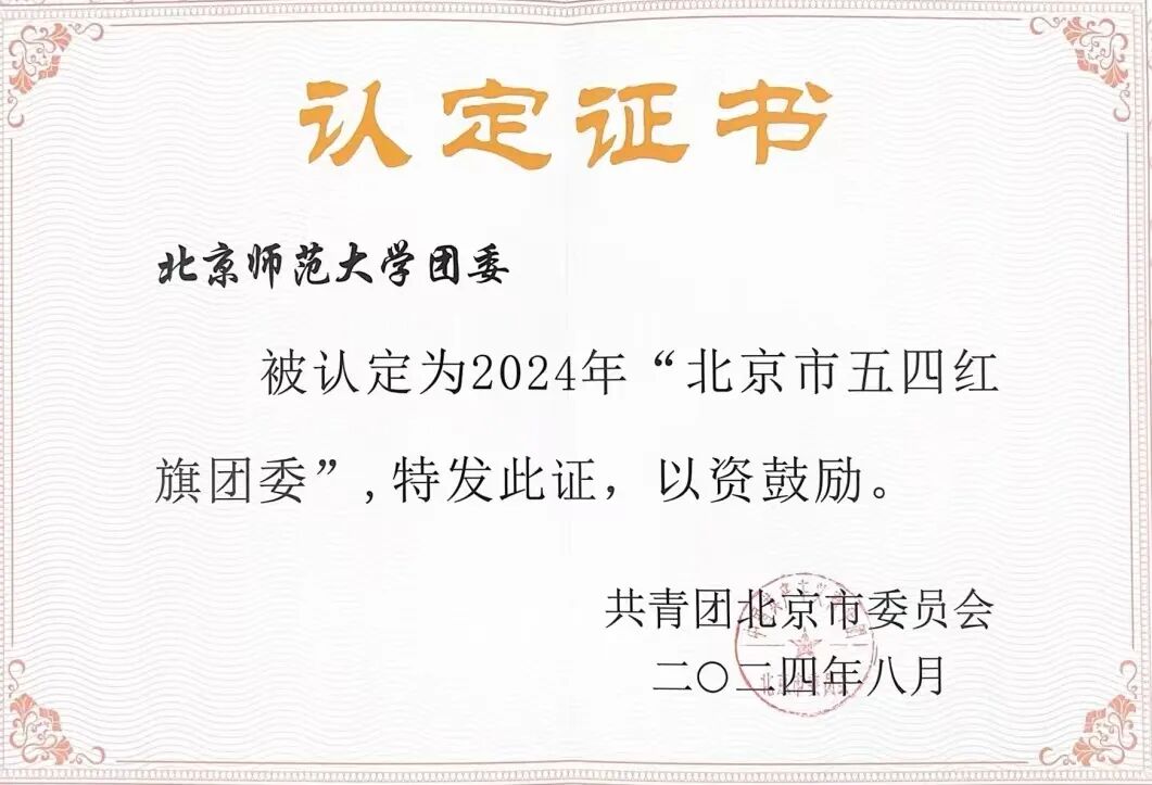 近日,共青团中央发布《关于表彰全国五四红旗团委(团支部)、全国优秀共青团员、全国优秀共青团干部的决定》,北京师范大学团委获评“全国五四红旗团委”荣誉称号。