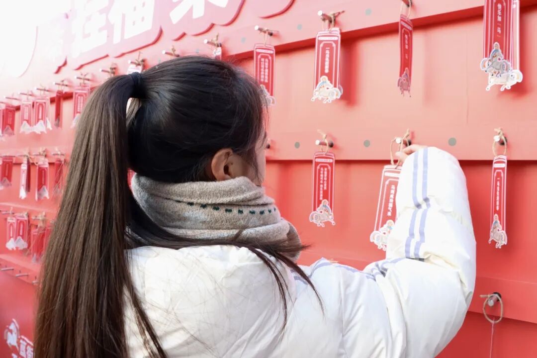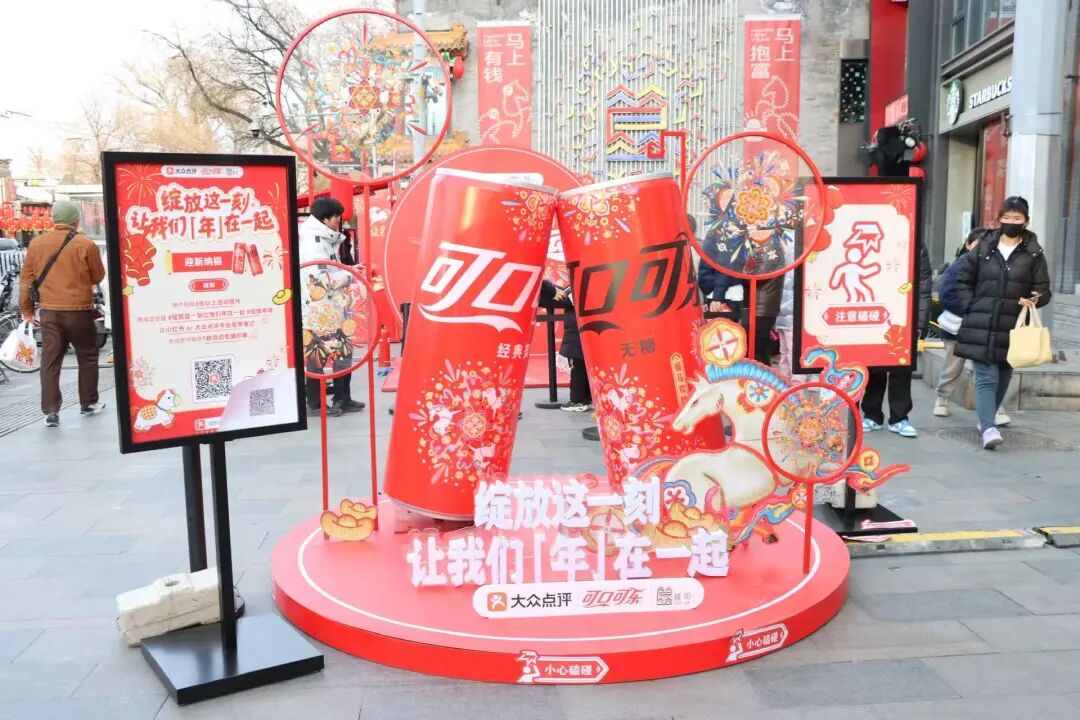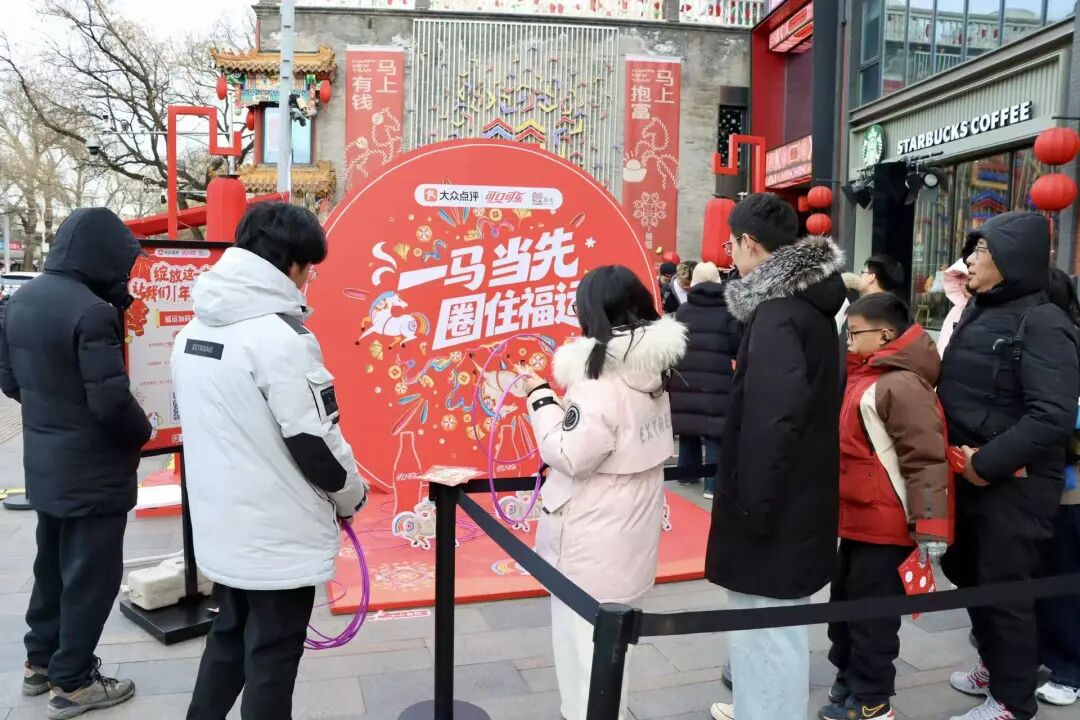 本次快闪活动以“福马迎春、好运全开”为主题,打造五大福气互动关卡。现场人气爆棚,马年主题美陈、可乐“瓶纳百福”限定场景氛围感拉满,成为朋友圈、小红书的热门打卡点;福运套圈游戏区欢声笑语不断,大家瞄准小马桩精准投掷,在童趣互动中解锁福运印章;福愿墙上挂满心愿贴,一句句新年期许与簋街烟火相融,让年味更有温度。