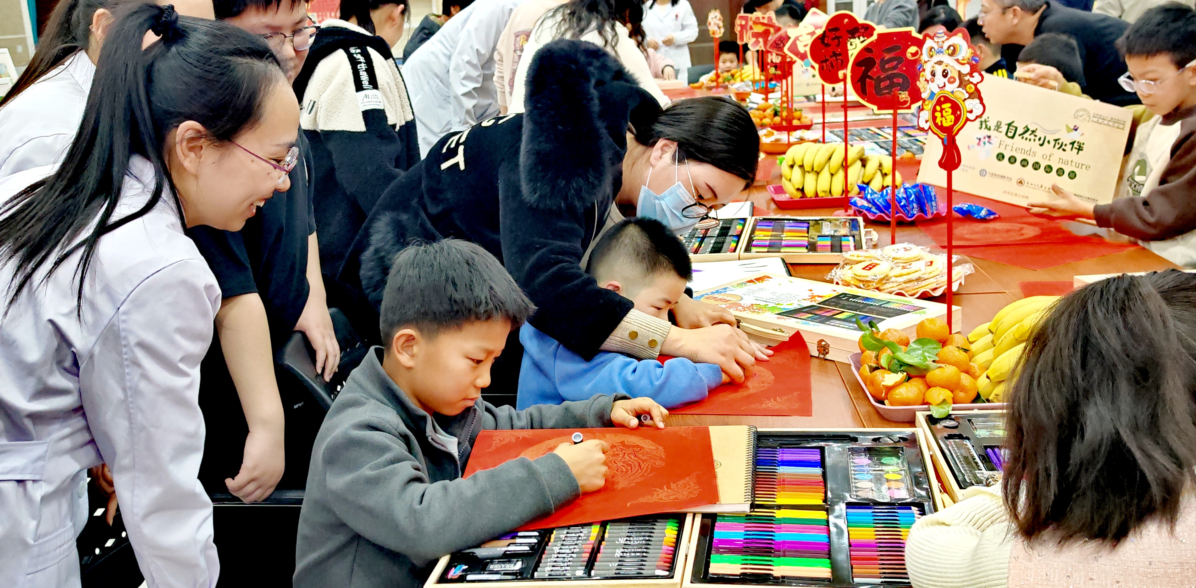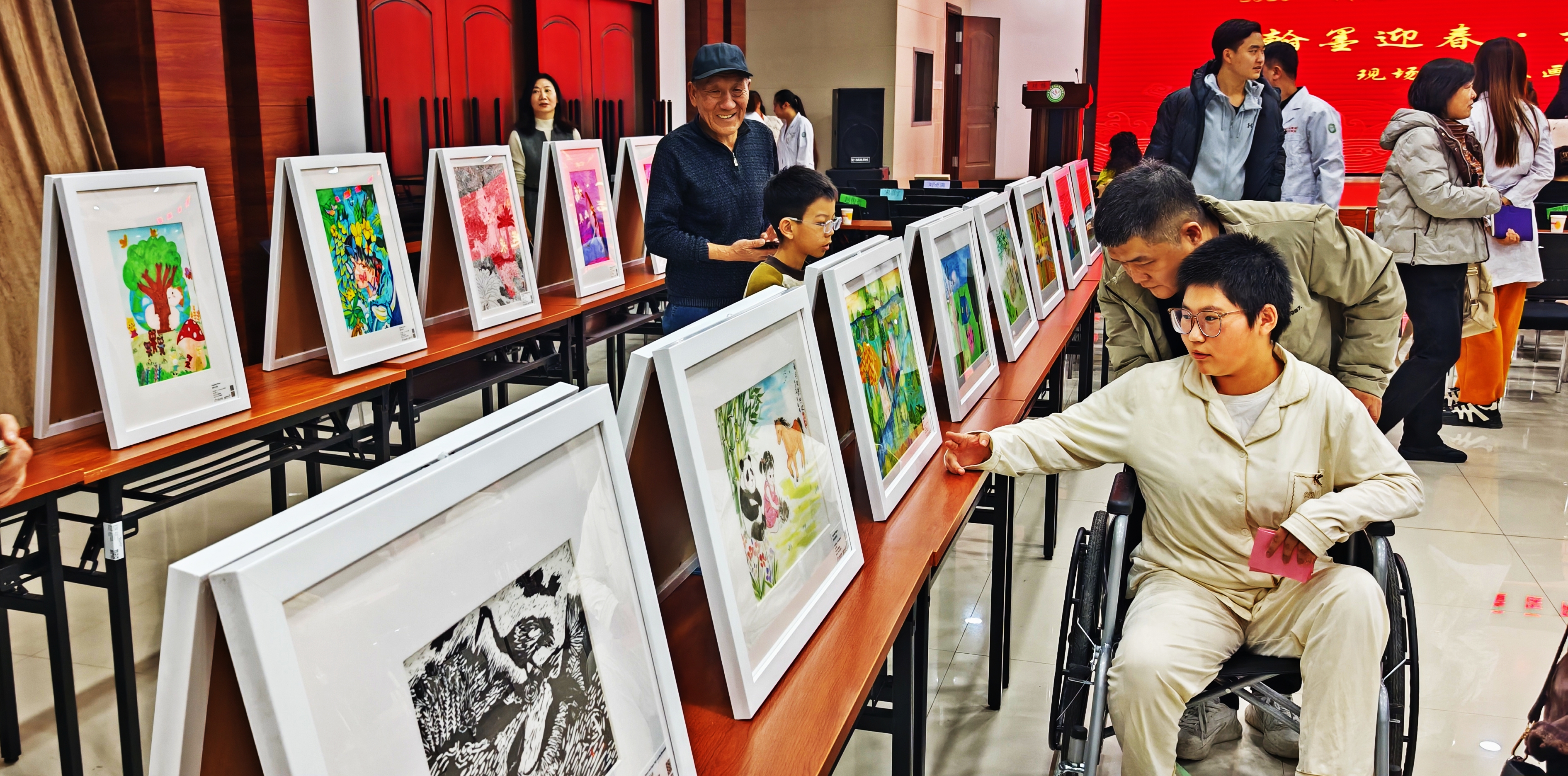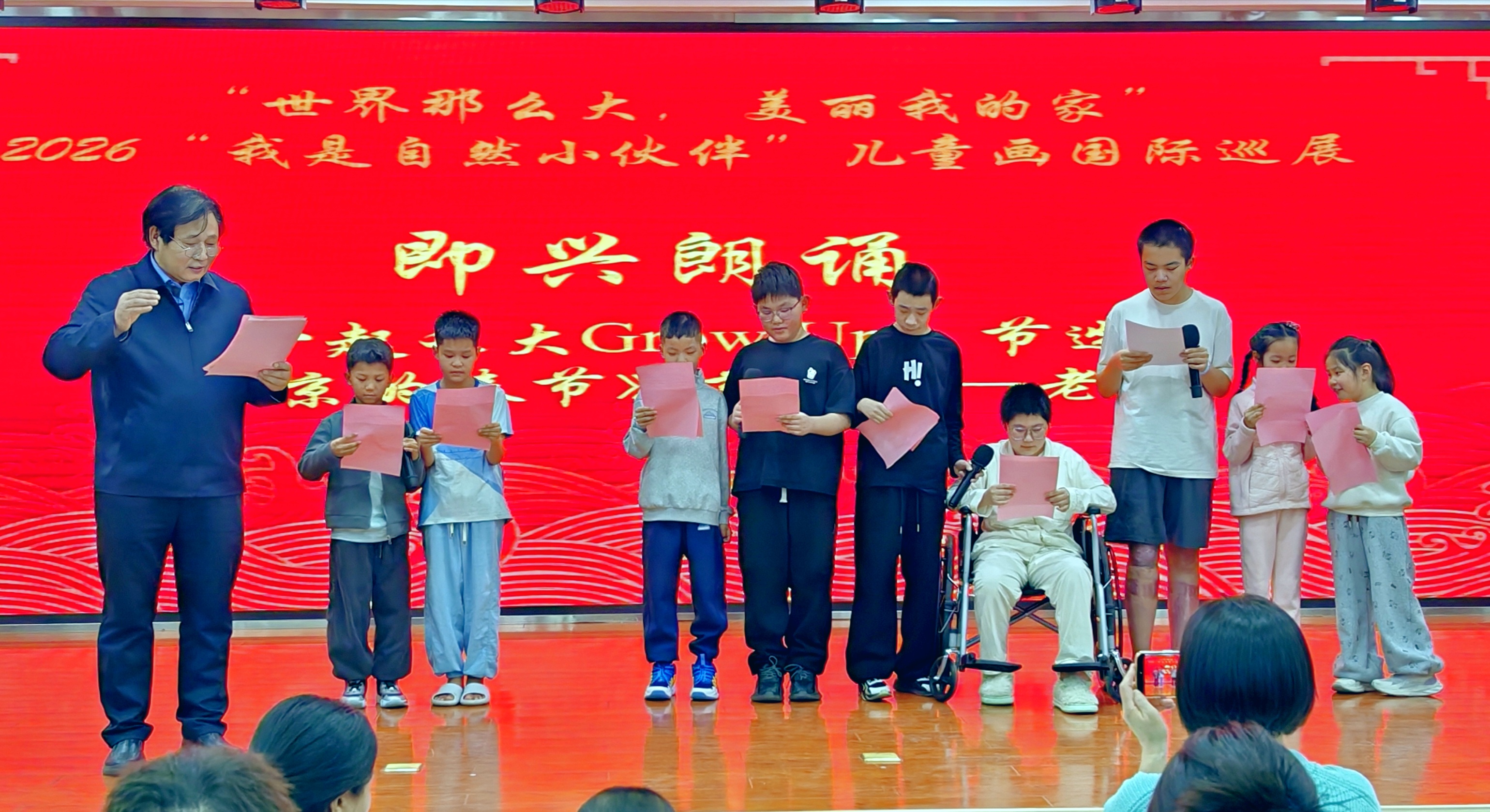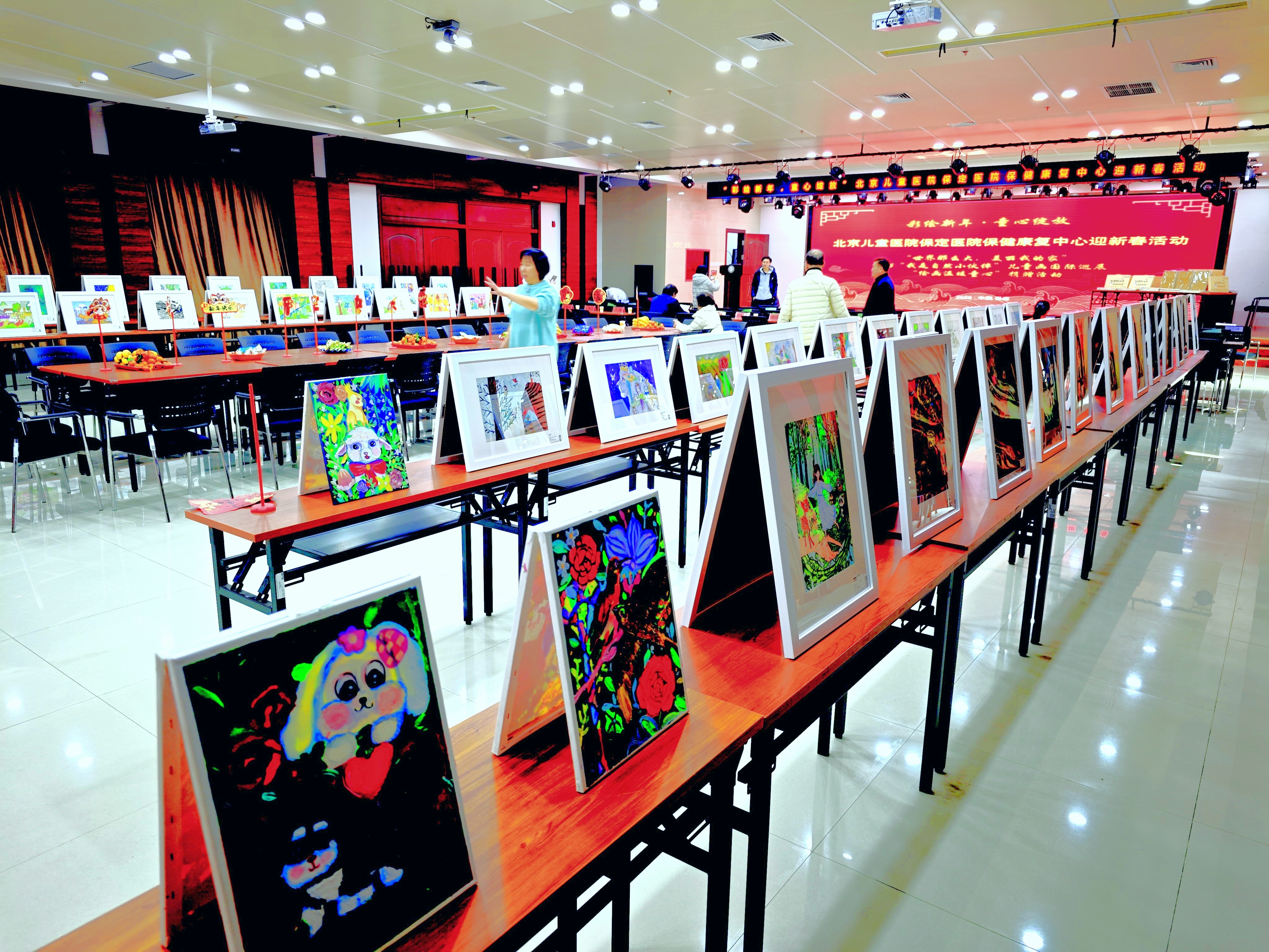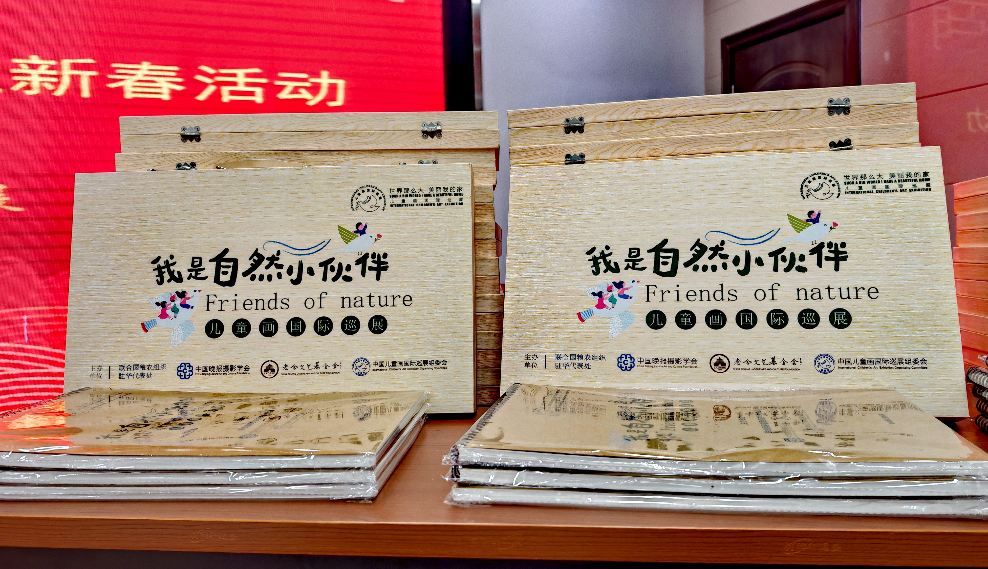 同时在现场布置了一个国际儿童画的小型展览,有100幅作品,让孩子们学习、欣赏。