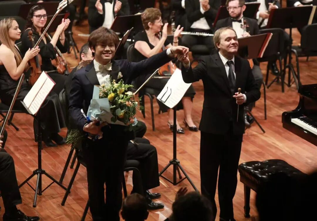 1月23日音乐季开幕式与25日专场音乐会中,饶灏两度完整呈现肖邦《第一钢琴协奏曲》与《第二钢琴协奏曲》。导师李穗荣全程陪同。她观察到,观众大多身着正装,无人使用手机,全程沉浸于演出。演奏结束后,全场起立鼓掌,场面令人动容。第二场演出,饶灏特意身着中式服装登场,“穿上这身衣服,作为中国青年钢琴家站在这里,我内心很激动。”这位土家族00后不再满足于仅作为西方经典的诠释者,而是自觉肩负起文化沟通的使命,在国际舞台上展现中国新一代音乐家的风貌。