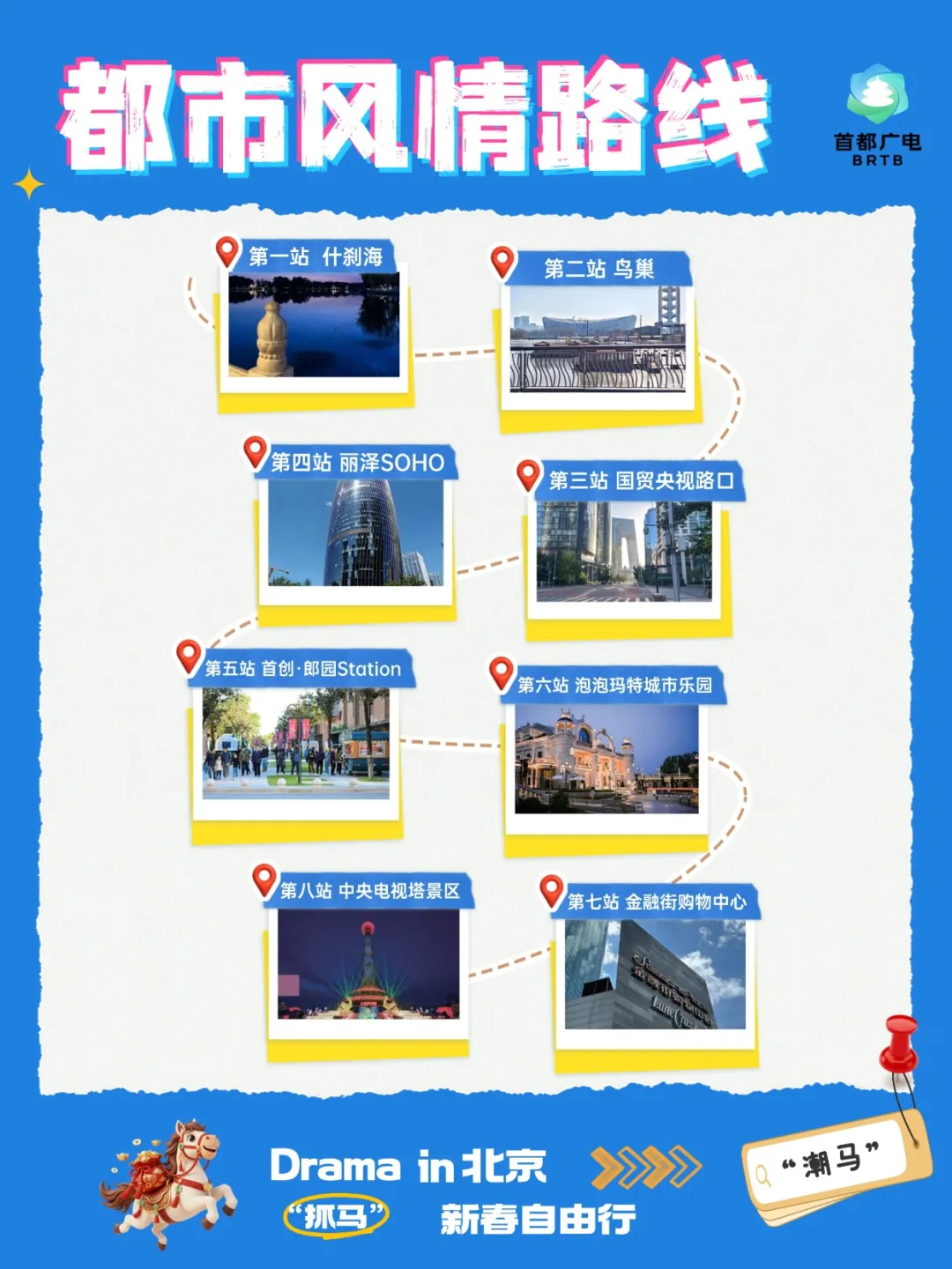 路线以“Drama in 北京,新春自由行”为主题,借电视剧英文“television drama”的趣味谐音“抓马”,引领市民游客在这个马年春节玩一场“抓马”游戏,感受北京的烟火气息与城市精神。·