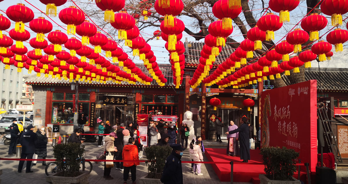 2月9日,在琉璃厂历史文化街区,国家级非物质文化遗产厂甸庙会以“当非遗遇见非遗”新春预热活动,拉开了马年的文化序幕。