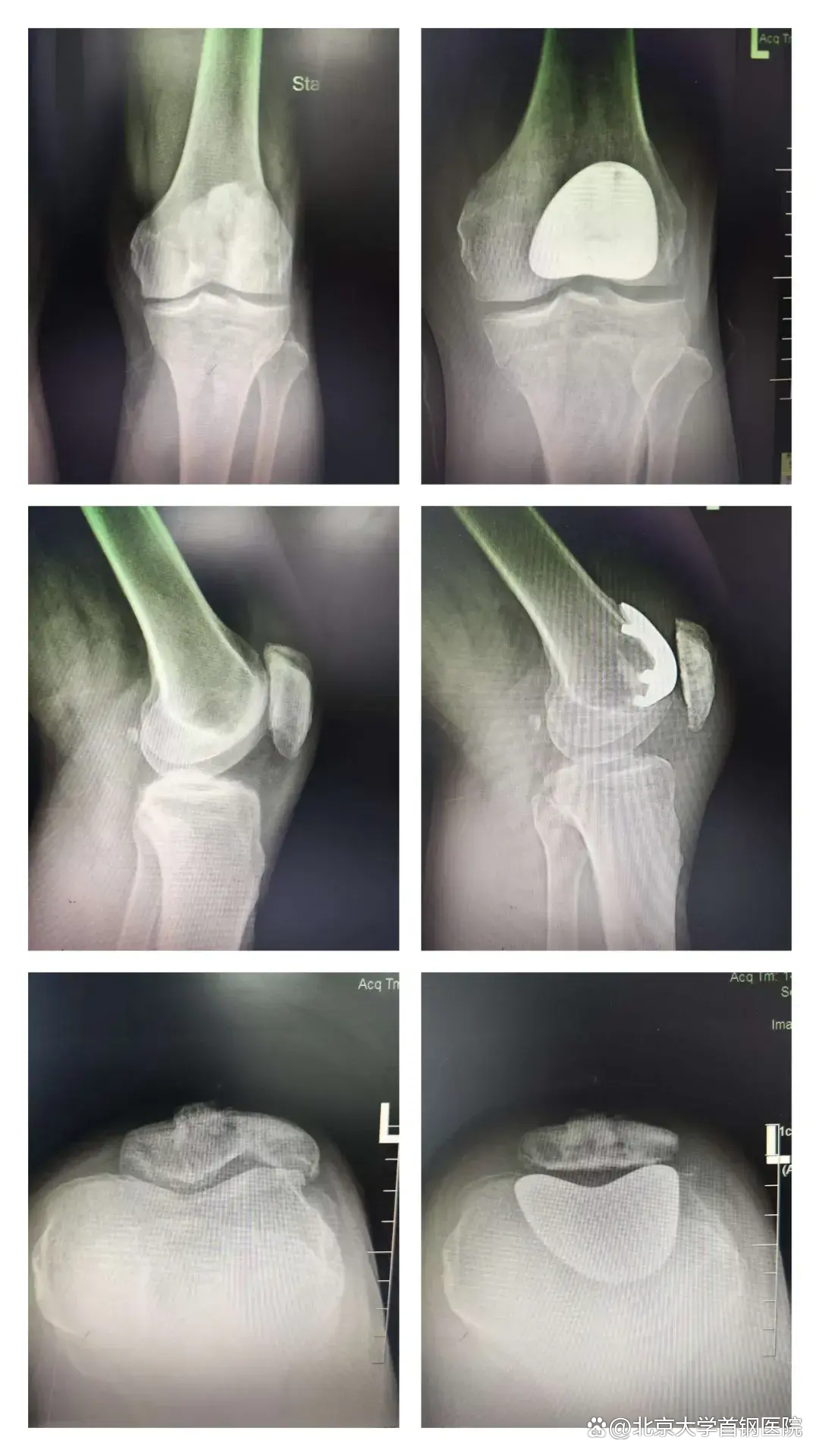 接诊后,科室主任高度重视,立即组织医疗团队为苏先生进行全面细致的检查,明确诊断为:创伤性髌股关节炎。结合他的年龄,身体状况及病情特点,量身定制了保膝手术方案——髌股关节置换手术。