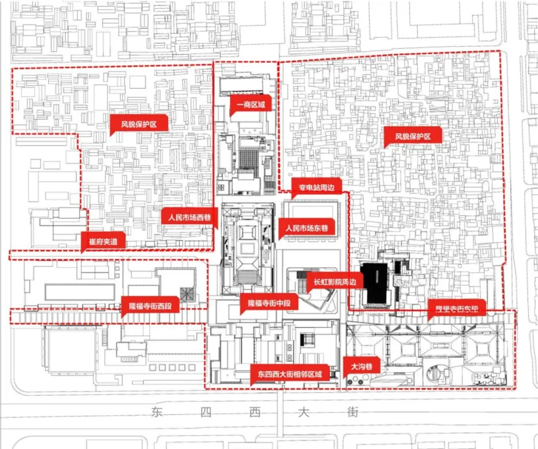 蜕变始于“十四五”。2021年,隆福寺片区被纳入北京市“两区”重点园区。2023年,隆福寺-美术馆片区被纳入北京城市公共空间改造提升示范工程,并获得市政府固定资产投资全额支持。历经一年多的系统规划与精心施工,片区于2024年8月全面焕新亮相,正式向公众开放,为大众带来了多维度的城市更新体验:
