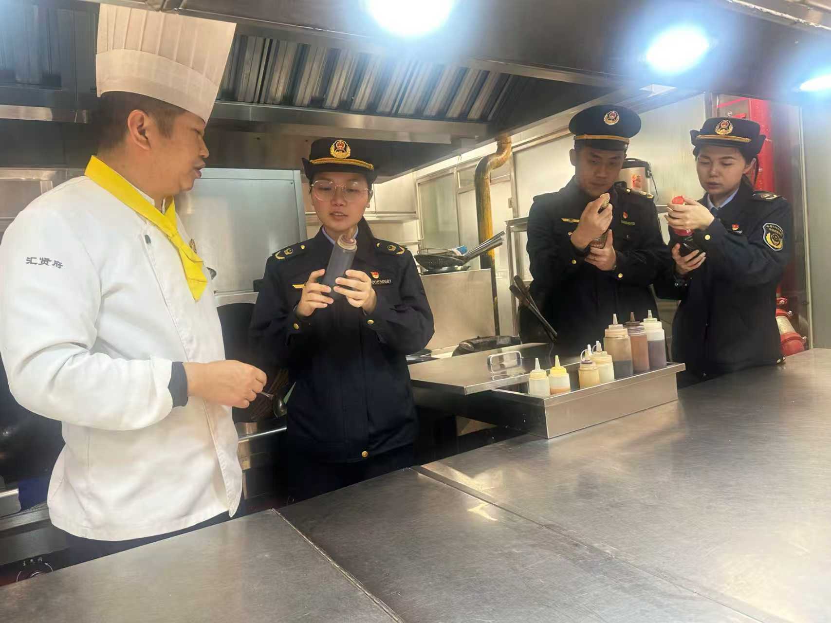 执法人员深入餐饮后厨,对食材采购储存、加工操作、餐饮具消毒、人员健康管理等环节开展细致排查,督促餐饮单位严格执行食品安全制度,强化过程控制。同时,对于承接年夜饭的餐饮单位,执法人员还重点评估其接待能力,指导做好菜品留样与应急预案,防范食品安全风险。