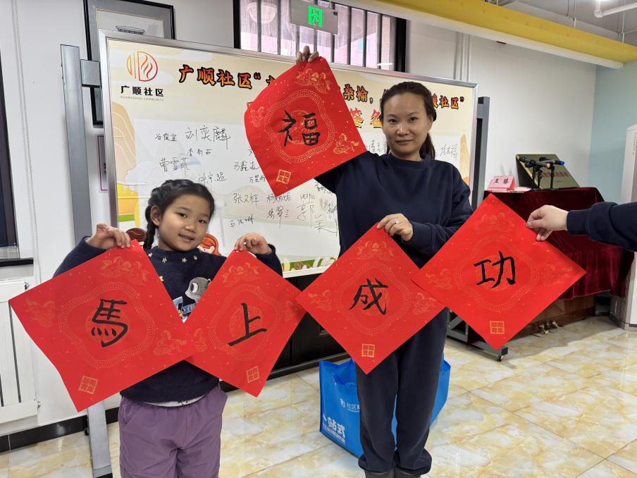 2月10日,朝阳区广顺社区活动室内墨香萦绕、暖意融融,“福暖家门·亲子传情”写福字亲子活动在这里温馨开展。活动吸引了15组社区青少年家庭积极参与,共赴一场传统文化与亲情交融的体验之旅。