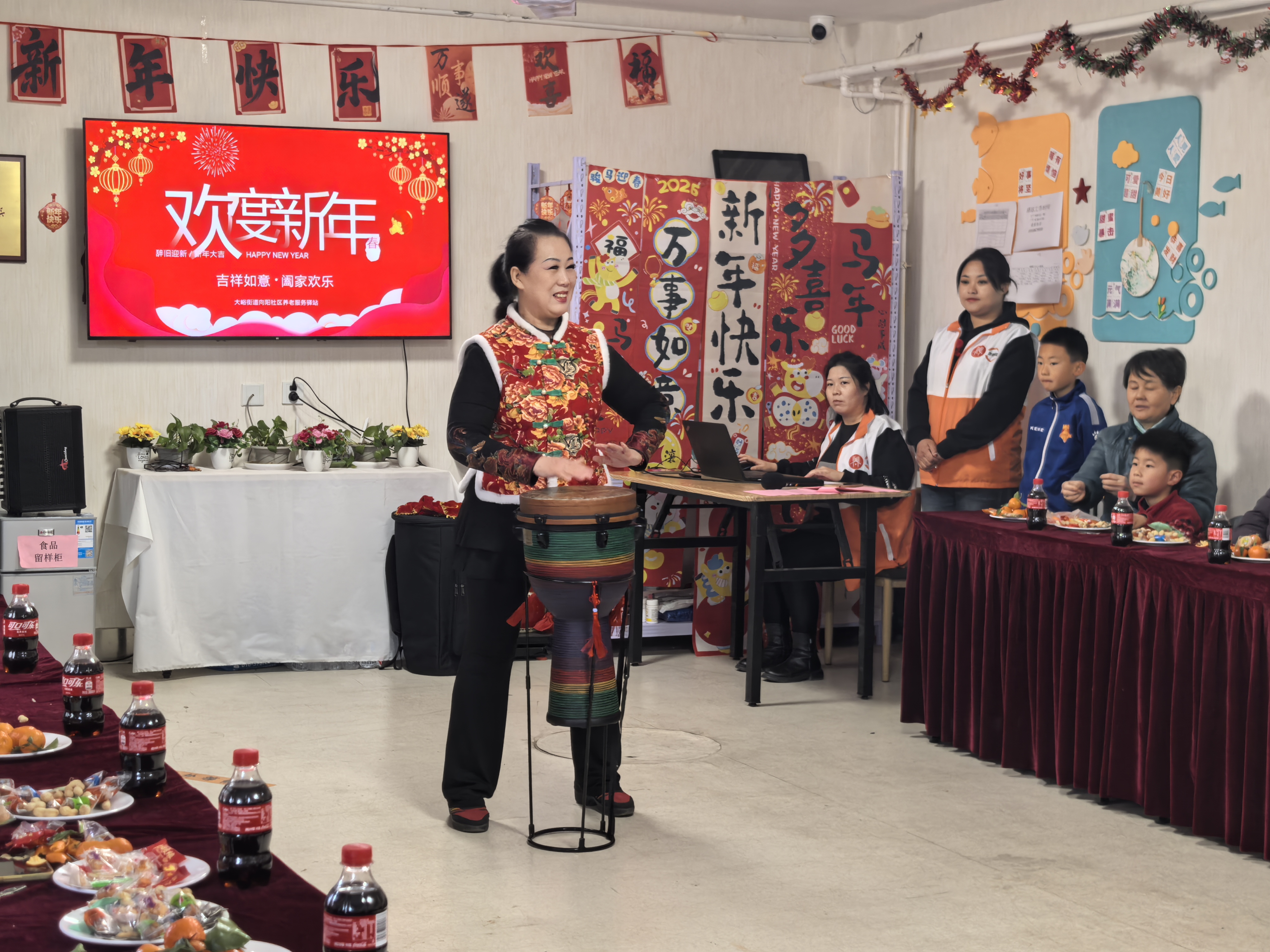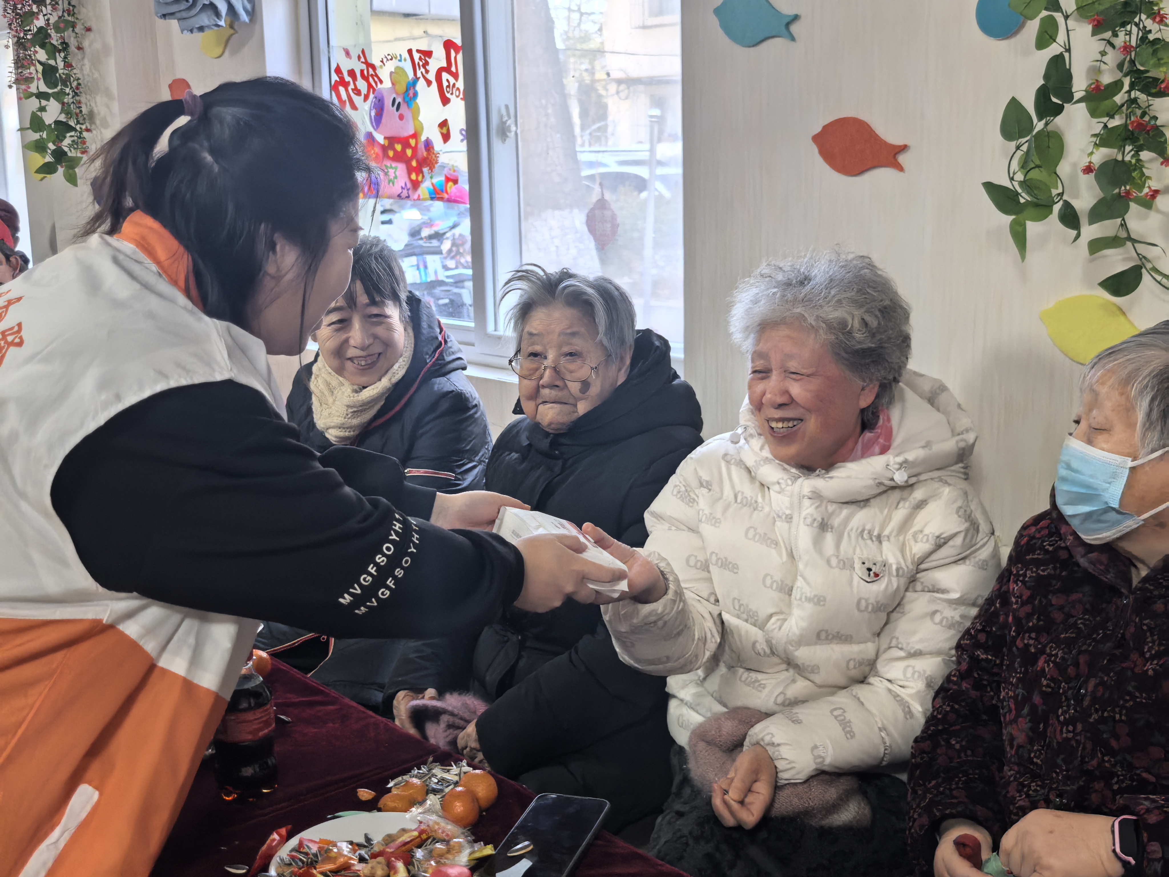 文艺表演结束后,热闹的击鼓传花互动游戏正式开启,进一步点燃了现场氛围。老人们围坐一圈,品着香茗、吃着小吃与水果,一边闲话家常、畅谈生活趣事,一边分享新年期盼与心愿,现场暖意融融、其乐融融,尽显邻里相伴的温情。