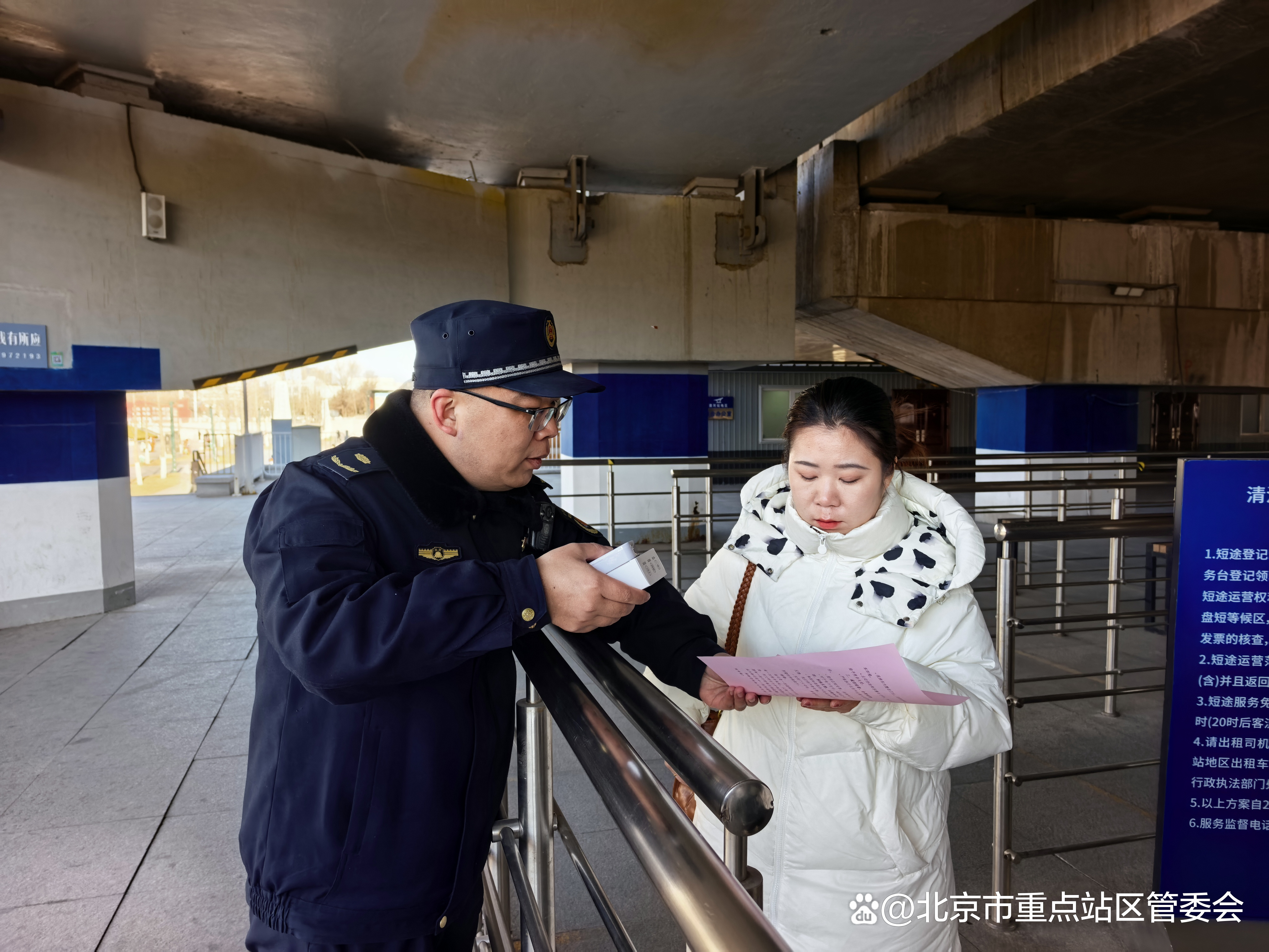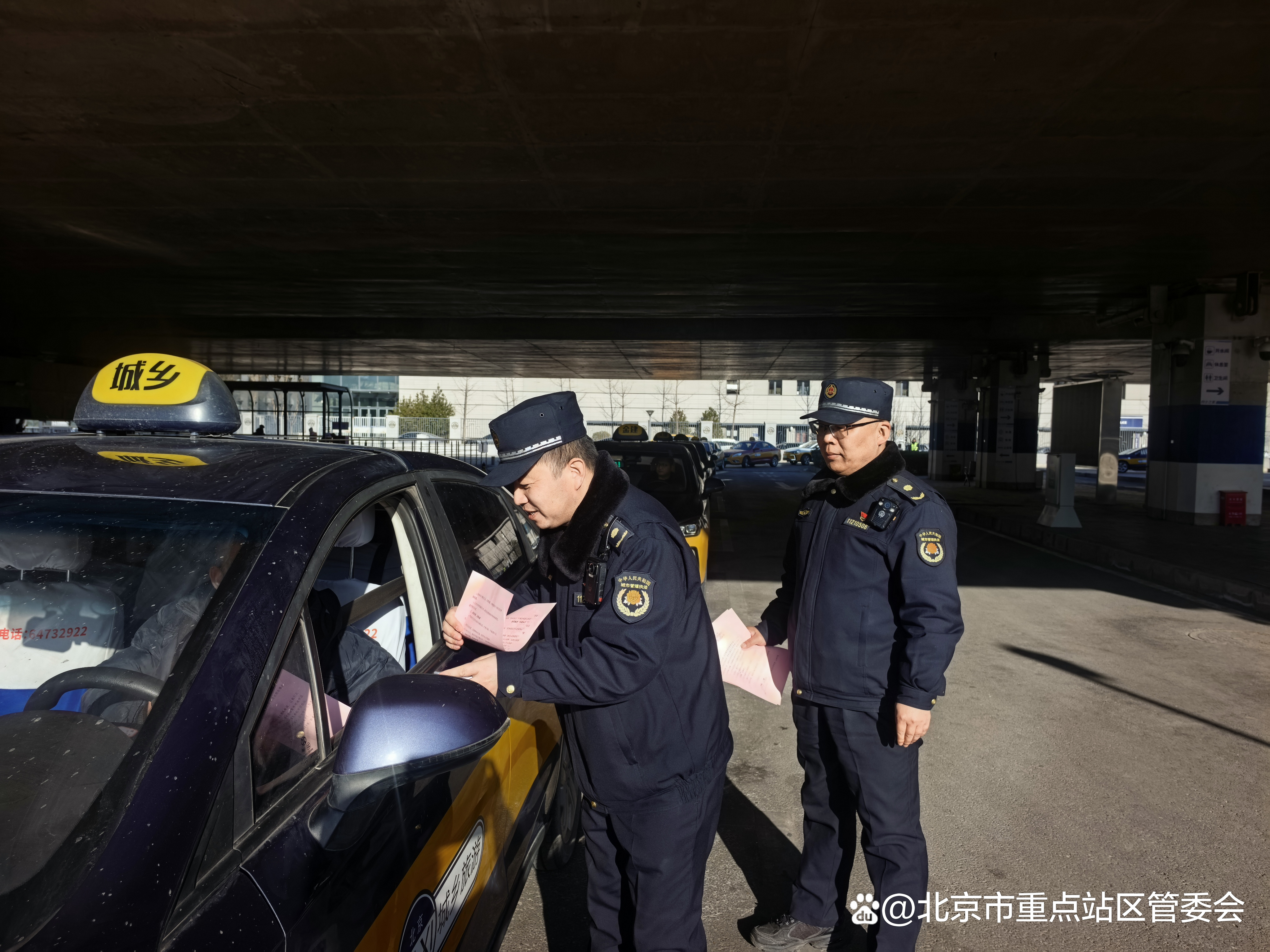 执法大队坚持以人为本,号召全体队员在严格履职的同时,带头践行文明服务。在进出站口、出租车调度站、上地东路沿线等重点区域,主动开展爱心帮扶,协助老弱病残孕等特殊旅客搬运行李、指引路线、答疑解惑。在这场年度归乡大潮中,一抹抹“蓝色身影”已成为旅客身边可依靠、可信赖的帮手,也是最安心、最暖心的流动风景线。