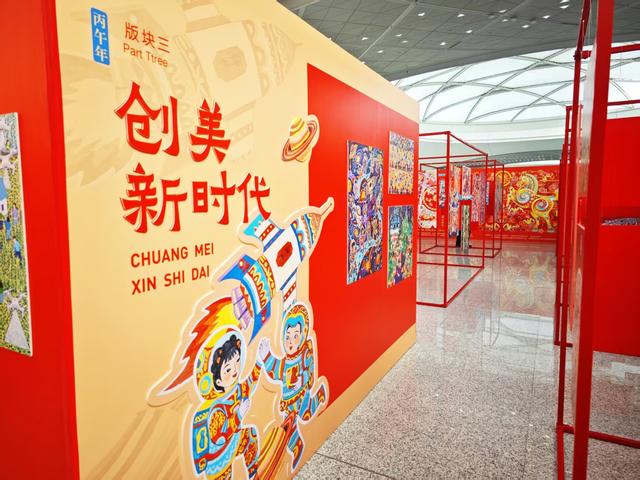 此外还有百马百福——“新生活・新风尚・新年画” 美术创作展览,创新打造线下展览开放式展示新模式,200余幅年画作品在通州站内以公共艺术形式进行散点铺装展示,用色彩绚丽、题材丰富的年画作品,以最亲近温暖的方式对年画艺术进行公众推广与传播,展现新时代文明实践与城乡融合发展新貌,契合春节喜庆氛围。