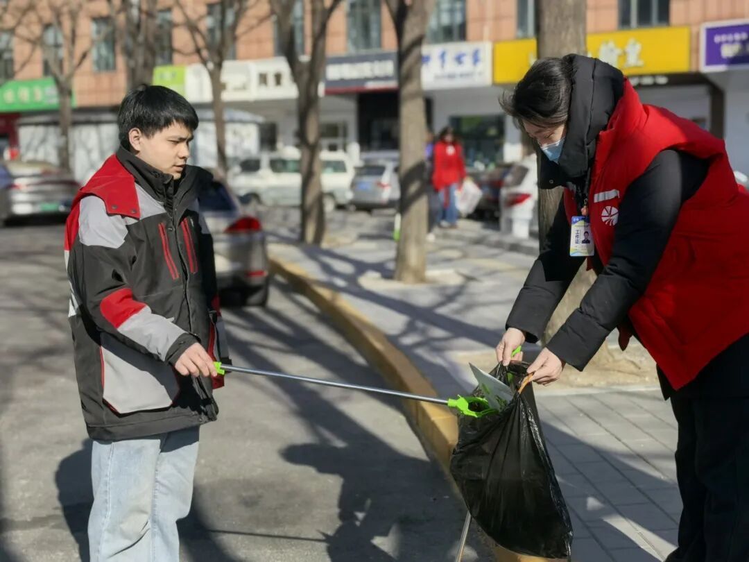 青少年志愿者们化身“环保小卫士”,干劲十足地捡拾绿化带垃圾、擦拭宣传栏,用稚嫩的声音倡导环保理念。