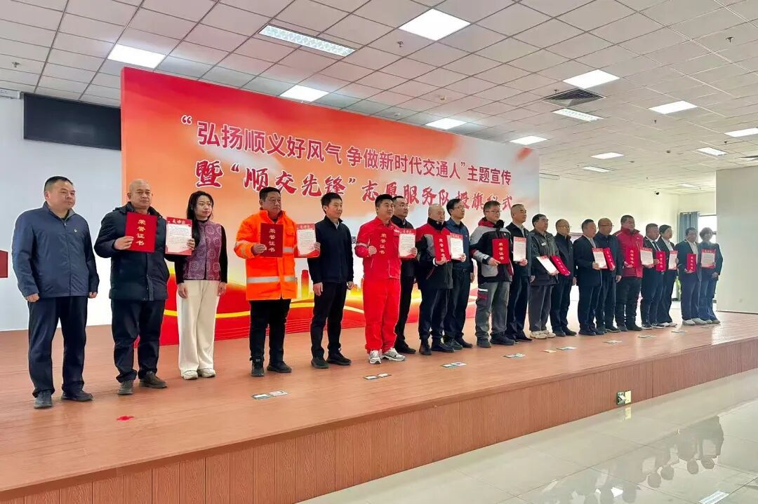 2月9日,“弘扬顺义好风气,争做新时代交通人”主题宣传暨“顺交先锋”志愿服务队授旗仪式在顺义区劳动大厦举行。110名来自交通运输一线的先进典型受到表彰,五面“顺交先锋”志愿服务队旗帜授予行业代表。