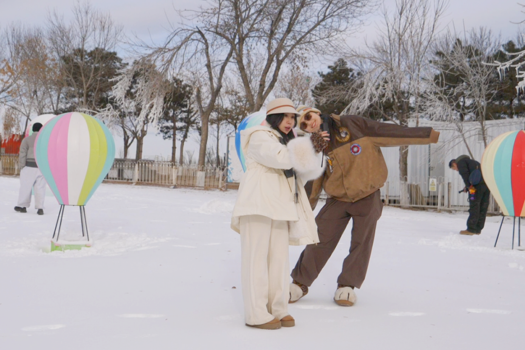 雪世界里银装素裹,欢乐氛围扑面而来。大V们一到现场便迅速进入“拍摄模式”,镜头里既有冰雪世界的动感,也有春节将至的热闹感。