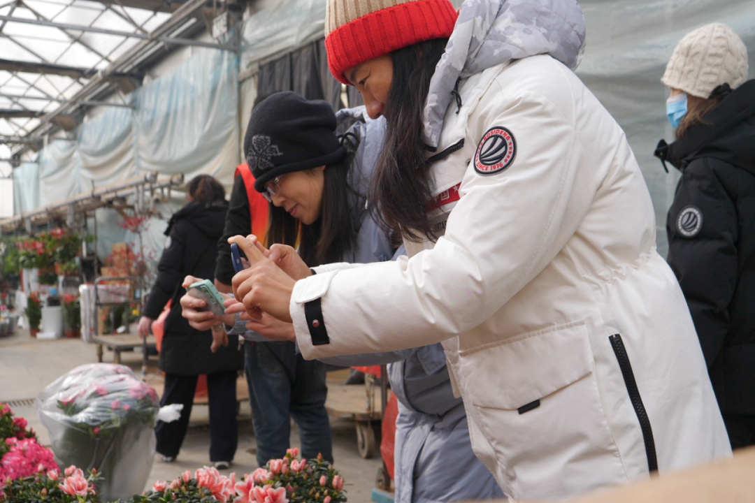 离开冰雪世界,大家很快抵达北京国际鲜花港。温室展区里暖意融融,五彩斑斓的年宵花映入眼帘,空气里都是淡淡花香。这里汇集了全国各地的优质年宵花,核心品类齐全,小众特色品种也让人眼前一亮,随手一拍都是“新年壁纸”。