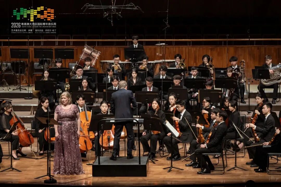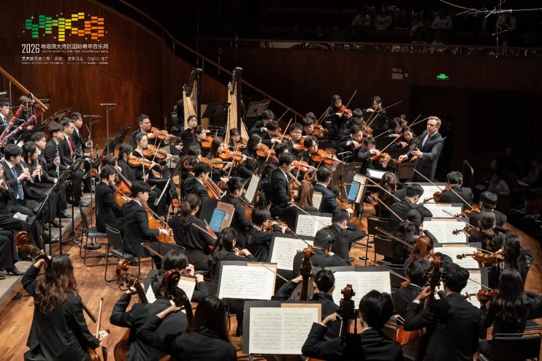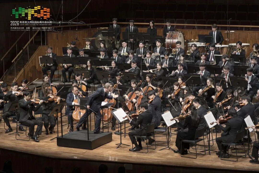 2月6日晚,在“粤港澳大湾区国际青年音乐周”十周年之际,由音乐周音乐总监、指挥家丹尼尔·哈丁执棒,102位来自全球顶尖音乐学院及职业乐团的青年音乐家组成的YMCG管弦乐团,在广州星海音乐厅献上了一场隽永细腻又锐气蓬勃的音乐会。