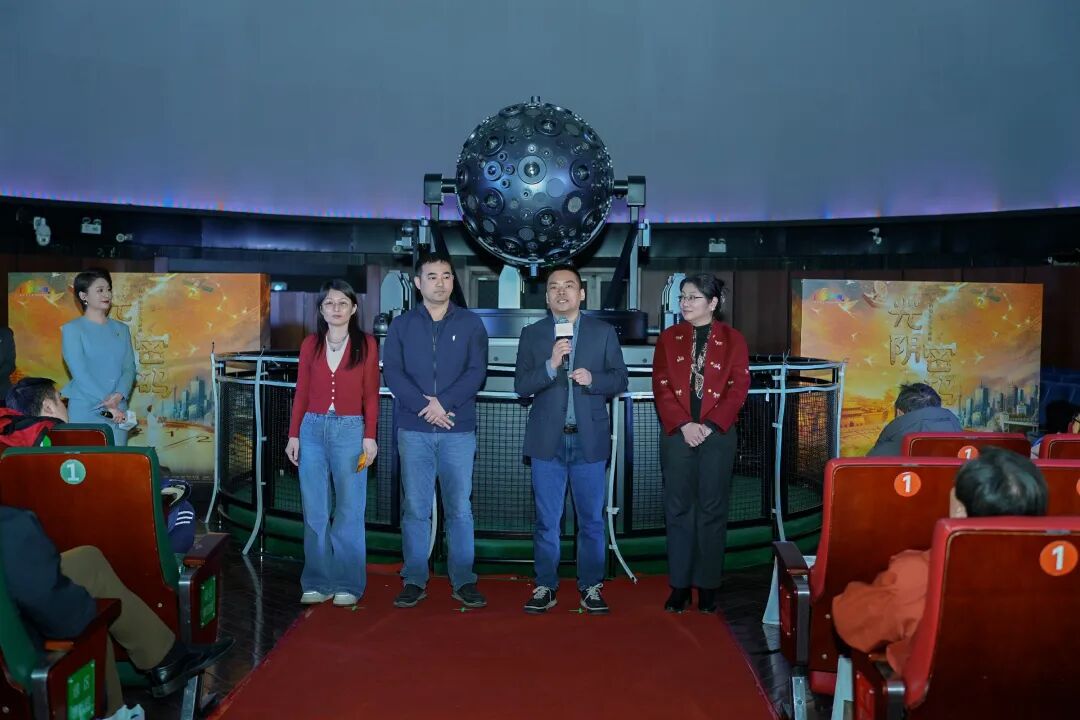 观影环节开始前,北京天文馆党委书记臧振远发表致辞,介绍《光阴密码》这部影片的创作初衷、核心思想及北京天文馆多年来深耕原创特种科学影片、致力于天文科普事业发展等整体情况。随后,中国电影家协会动画电影工作委员会副会长兼秘书长张春景致辞,介绍影片承制团队联合多领域专家深度参与创作,确保影片在科学严谨性、艺术表现力与沉浸体验感上实现高度统一等相关情况。