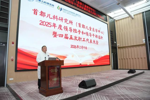 为全面回望2025年度履职历程,压实领导干部使命担当,凝聚全体职工奋进力量,擘画儿童健康事业高质量发展新蓝图。2026年2月9日下午,首都儿科研究所(首都儿童医学中心)在儿保楼报告厅召开2025年度领导班子和领导干部述职暨四届五次职工代表大会。全体领导班子成员、职工代表及中层干部参加会议。