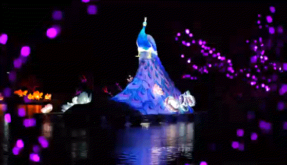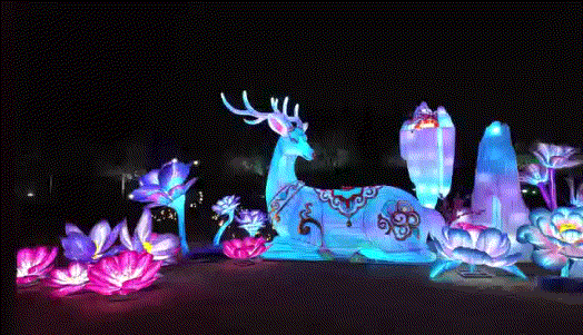 机械传动添灵动:青松随光影摇曳,瑞兽踏祥云巡游,孔雀开屏似星河倾泻,动态灯组让整个灯会都灵动起来;