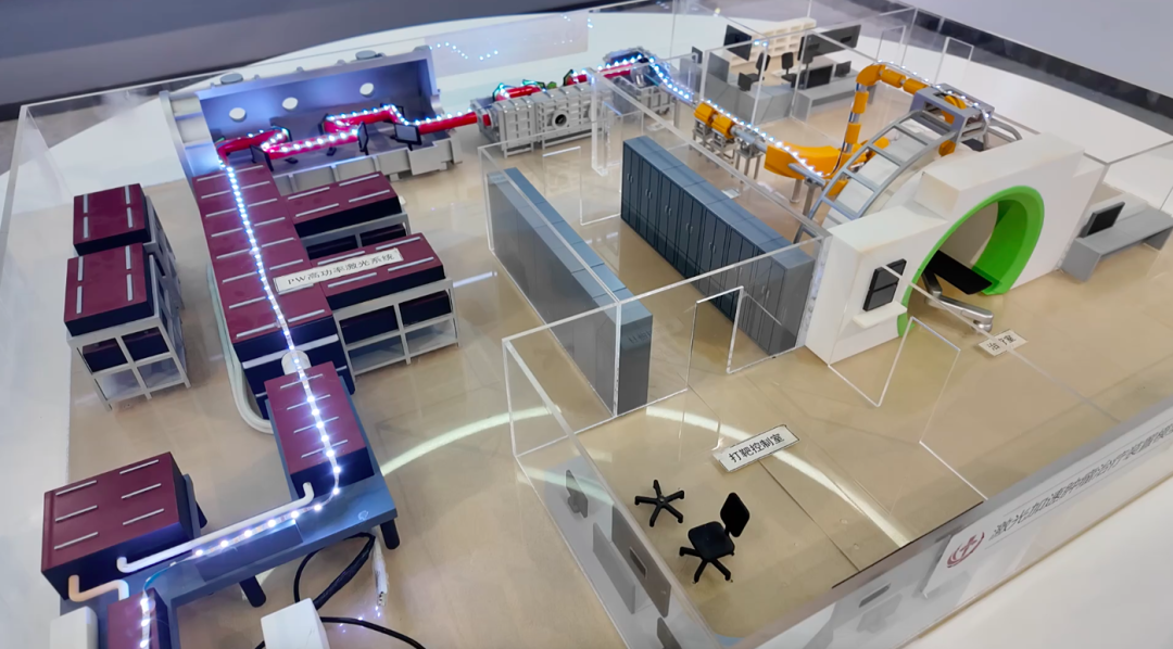 “发动机”产生的强激光在靶场与物质相互作用,催生出速度接近光速的高能质子束。这些质子束被精准引导至离子束配送与肿瘤辐照系统实验区。