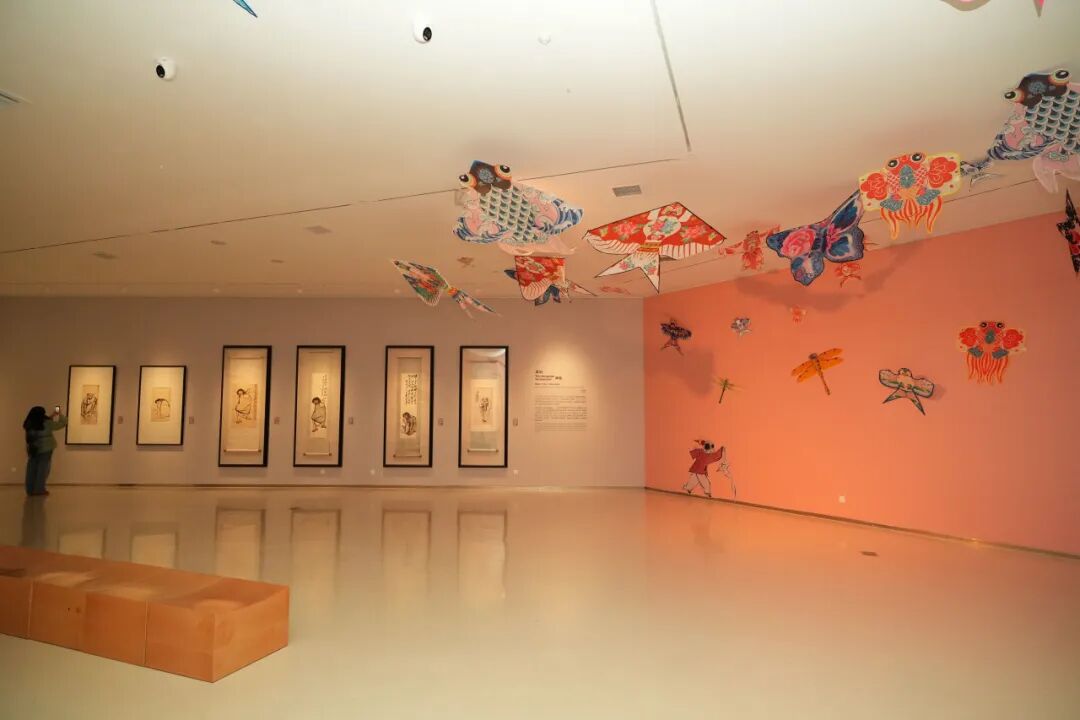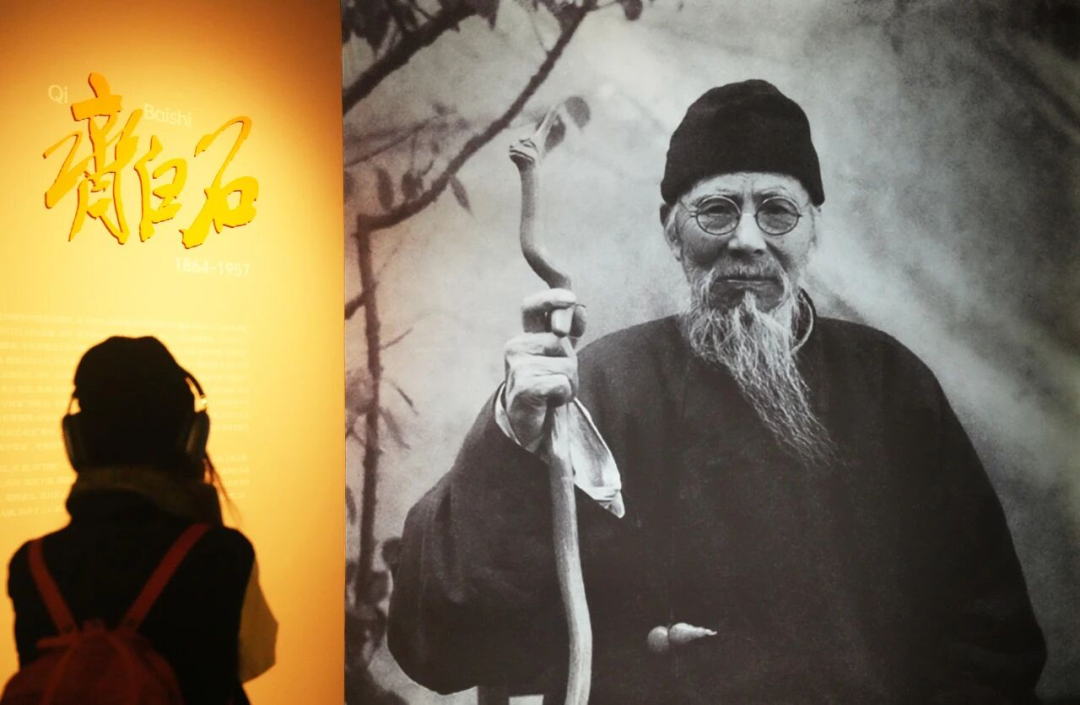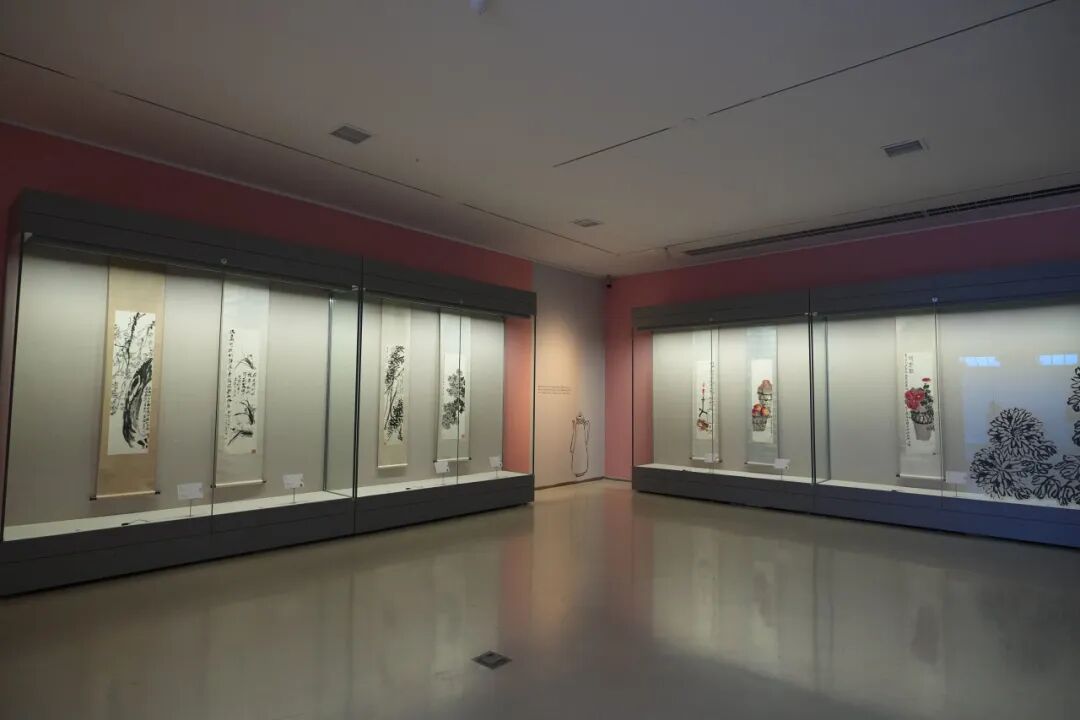 B4展厅“我行我道”是整场展览的核心观赏区,齐白石最负盛名的墨虾真迹在此集中亮相,“不似之似”的写意神韵跃然纸上。