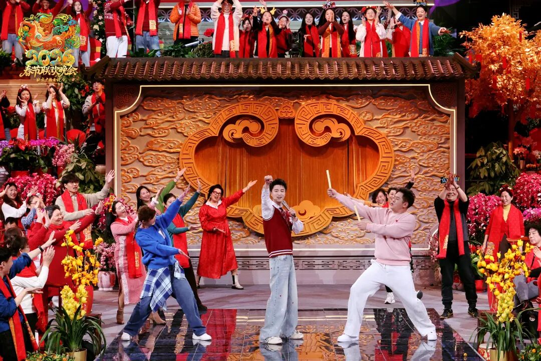 本届春晚最深刻的破题,还在于完成了一次从演播厅到生活现场的“迁徙”。在前门草场四条胡同的小院议事厅,青砖灰瓦围出了天然的“沉浸式”剧场。艾莉、曹随风、冯巩、侯林林、贾旭明带来的群口相声《他还是个孩子》,在此与150余名街坊邻里围坐共话。没有炫目的追光,唯有灯笼的暖晕与呼吸的共鸣。艺术于此,褪去所有浮华,显露出其最本真的模样,一种源于生活、归于生活的平等对话。与此同时,城市的脉动在更多真实空间中被精准捕捉。在北京通州站候车大厅,李梓溪、周铁男演绎的《许我一日浪漫》,将普通人的情感与生活气息,自然融入城市公共空间之中。而在地铁三号线的车厢内,杜海涛、李雪琴、王广、王男、徐志胜、杨迪、杨大鹏主演的《恋爱进行时》,则让一段都市爱情故事在流动的城市脉搏中自然生长。舞台的边界彻底消弭,艺术与生活,在此完成了一场静默而深刻的拥抱。