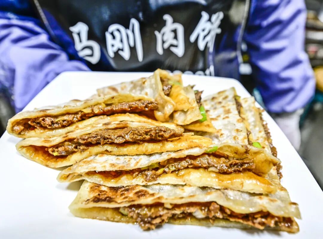 在通州,若想找到最地道的京东肉饼,真正的“伯乐”往往藏身于街头巷尾的食客之中。在马刚肉饼店里,一位老饕吃着小凉菜悠闲等待,后厨正热火朝天,一到饭点儿,人就多起来。店里弥漫着炙烤面食与新鲜肉馅碰撞出的焦香。老板马刚话不多,擀皮、填馅、封口、烙饼,动作干净利落。通州人对京东肉饼情有独钟,而马刚这儿被许多食客在点评软件上誉为“通州宝藏清真小店”:菜量大,用料新鲜,肉饼皮薄如纸却韧而不破,馅料塞得满满当当,汁水丰盈。最关键的是数十年如一日的那口“家里做不出的锅气”。小店不大,依靠街坊四邻的口碑屹立不倒。它是放学孩子的加餐站,更街坊邻里的身边食堂。
