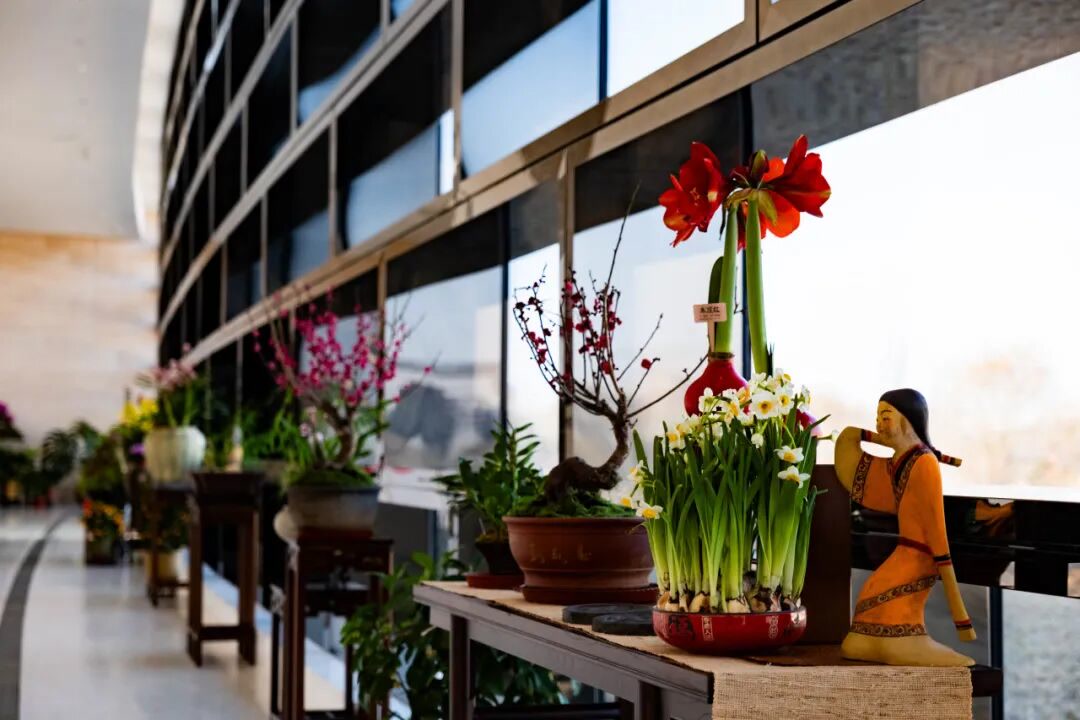 除了以上活动,博物馆二层文化长廊还设有岁朝清供场景。 “洛阳红”等反季牡丹,搭配汉风年宵花,带来视觉与嗅觉双重体验,新春氛围感拉满。