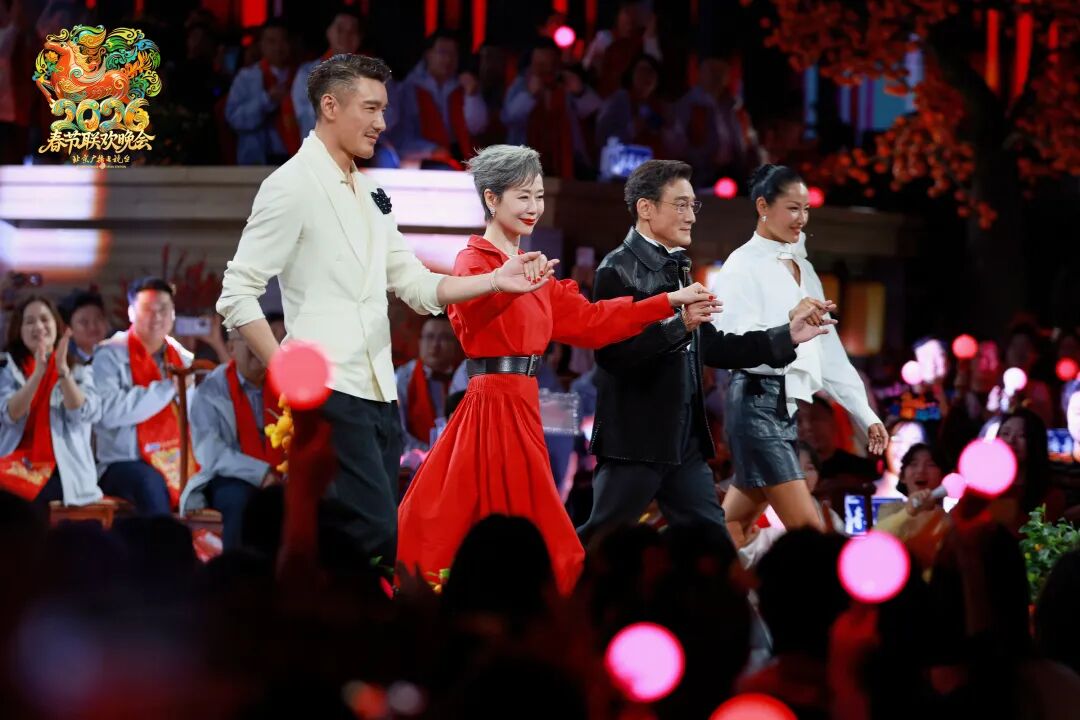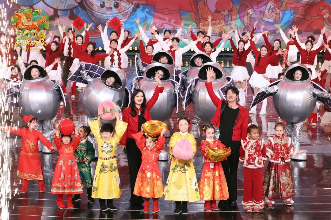 周深温情演唱《时间啊》,将春夏秋冬的四季景象投射在舞台上,把时间勾勒成触手可及的光影。歌声悠扬恰如一把温柔的钥匙,循着光影的轨迹,轻轻叩开每个人的记忆之门,串联起岁月里的温暖与牵挂,传递出对时光的敬畏与对生活的热爱。单依纯演唱《我表示理解》,用清澈嗓音唱出当代青年的坦荡与真诚,在传承中创新,彰显着华语音乐的生机与活力。梁家辉、叶童、胡兵、瞿颖携手演绎《青梅竹马》,将从青春到岁月的真挚情谊藏于旋律之中,岁月沉淀的从容,恰是人与人之间珍贵情感联结的最好诠释。金靖、关晓彤、王玉雯在《茉莉花》中跨越时空,以不同时代的女性风采见证时代变迁,她们身上所彰显的坚韧、自信与向善力量,延续着中国女性千年不变的精神底色,传递出昂扬向上的女性正能量,彰显着中华优秀传统文化的独特魅力。大张伟、谢娜以创新形式演绎《阳光彩虹小白马》,将人生挑战像素化,用乐观旋律传递温暖治愈的力量,彰显出积极奋进、向阳而生的时代正能量。