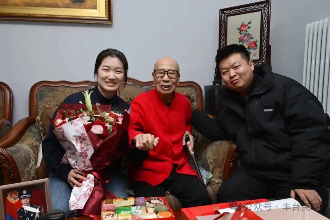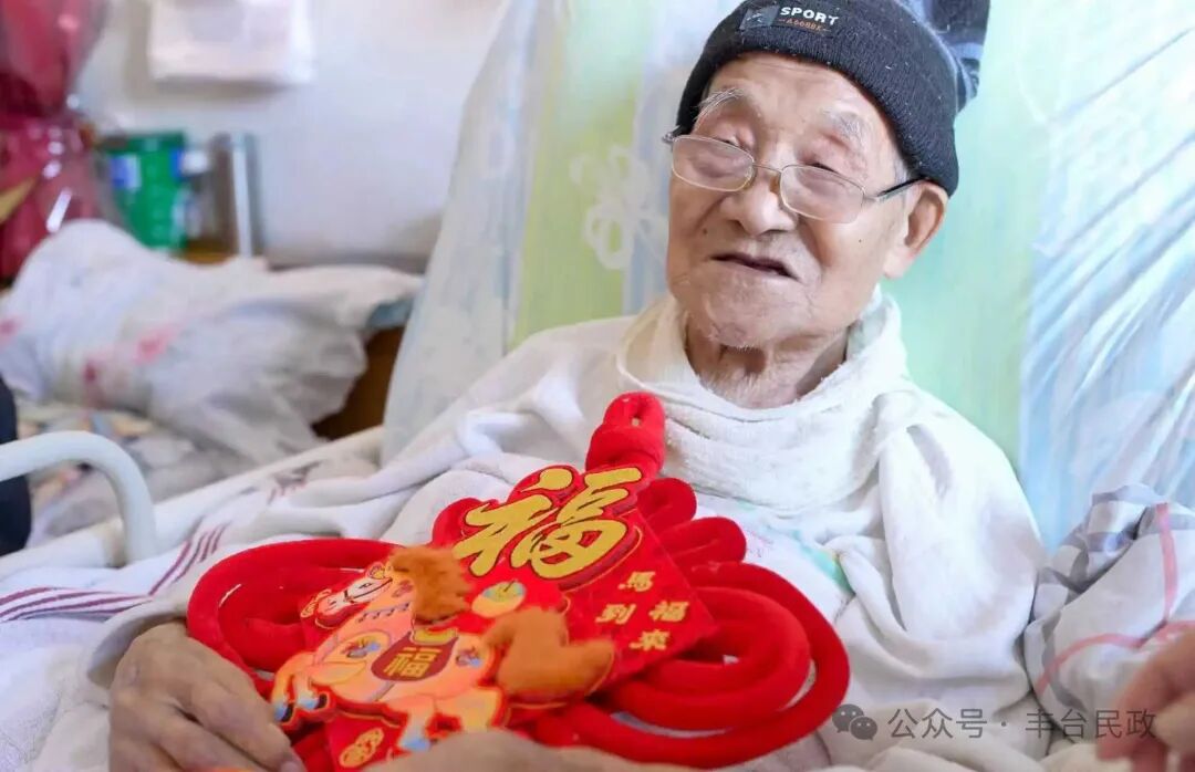 在丰台区委、区政府的统筹指导下,自2023年“百岁老人幸福工程”启动以来,已为全区982位98周岁以上的长寿长者建立动态服务档案,累计提供精准服务2642人次,举办定制化“幸福生日会”89场,编撰《丰台百岁老人口述实录》两册。癸卯岁末,丙午新春将至,《丰台时报》携手区民政局“百岁老人幸福工程”项目组,暖心走访10位百岁老人,聆听他们的百年人生故事,传承他们的可贵精神品格,汲取他们的人生智慧力量,既为百岁长者送上最诚挚的新春祝福,也邀他们为全区人民送上饱含岁月温度的新春寄语与美好祝愿。