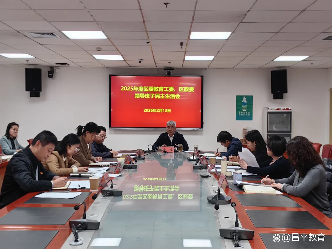 2月13日,昌平区委教育工委、区教委领导班子召开2025年度民主生活会,紧扣“深入学习贯彻习近平新时代中国特色社会主义思想,全面贯彻落实党的二十届四中全会精神,以打攻坚战、持久战的决心和恒心,锲而不舍落实中央八项规定精神,推进作风建设常态化长效化,以优良作风凝心聚力、真抓实干,奋力开创中国式现代化建设新局面”主题,结合思想和工作实际,深刻查摆问题、剖析不足,严肃认真开展批评和自我批评。区政协副主席、区委教育工委书记王建主持会议。区委组织部公务员二科科长关洋、区纪委第五纪检监察室干部曹馨元到会指导。