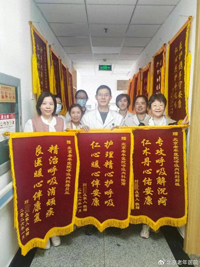 1月30日,北京老年医院呼吸内科病房内暖意融融,患者刘爷爷的家人将十面锦旗郑重送到科室医护人员手中,锦旗上的鎏金字迹承载着全家对呼吸内科全体医护人员的无尽感激,更镌刻着医护团队奋力挽救老人生命的责任与担当,以此致谢全体医护人员给予老人的第二次生命。