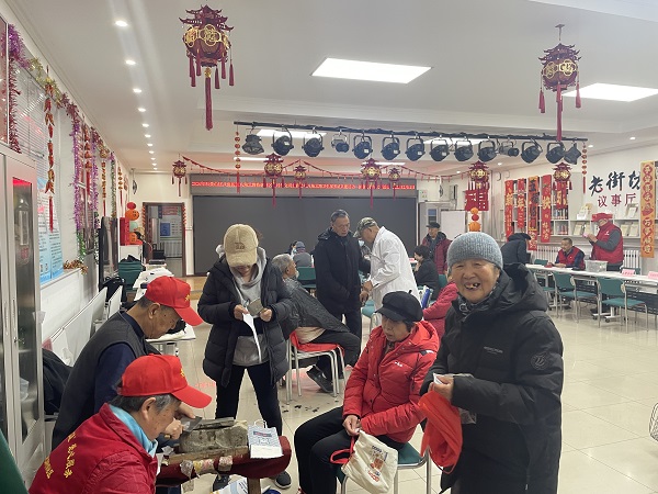 与此同时,社区服务站志愿者们同步开展健康便民服务,为现场居民免费测量血压、血糖,细致解答健康疑问,提醒大家冬季注意养生保健,用专业服务守护居民身体健康,为平安过年保驾护航。