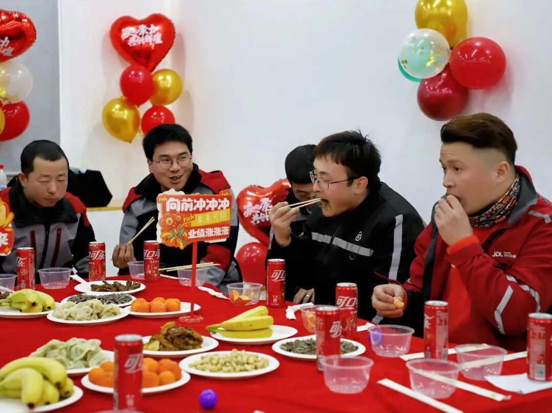 表演结束后大家围坐一桌,共享一席热气腾腾的新春团圆饭。歌声、笑语、家常菜香交织,暖意从舌尖蔓延至心间,年味在推杯换盏间愈发浓郁。“平时忙着送单,哪有时间坐下来好好吃顿饭,今天这顿团圆饭,吃得心里热乎乎的!”顺丰小哥刘佳阳笑着说道,这份温暖同时触达每个人的心里。