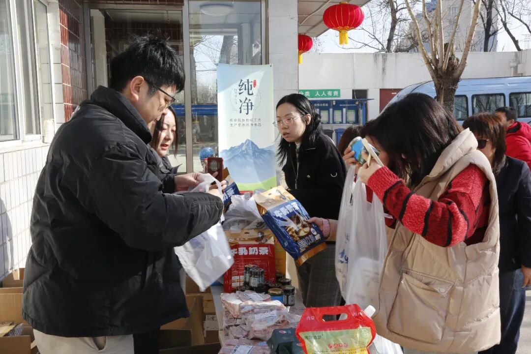 活动现场,烤奶皮、草原牛羊肉、优质小米等琳琅满目的内蒙古特色农产品整齐陈列、品类丰富。工作人员现场讲解产品产地优势、品质特点及食用方法,让大家近距离感受草原物产独特魅力。活动还设置了试吃体验,干部职工们纷纷驻足品尝、咨询选购。现场购销氛围热烈有序,暖意融融。