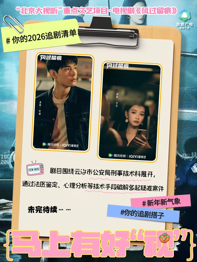 作为国内首部聚焦“痕迹检验”细分领域的作品,“北京大视听”重点文艺项目·电视剧《风过留痕》用专业与真实,打造“刑侦教科书式”剧集。该剧于2026年2月3日开播,由龚俊、姜武、孙怡领衔主演,改编自前痕检师九滴水作品《尸案调查科》,围绕一群刑警、刑事技术工作者展开,在微观的痕迹世界各司其职,一心还原命案真相。