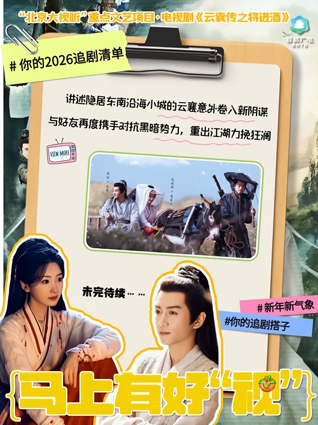 2026在一场场精彩的故事中,感受岁月温情、汲取前行力量,与家人挚友共度惬意又难忘的美好时光。马年新春锁定“北京大视听”6部精品好剧,让动人故事常相伴,尽享充满“剧”味的美好时光~
