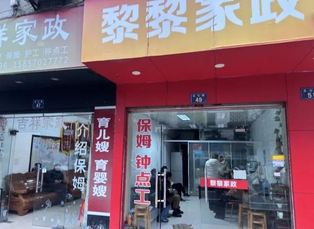 早上9点半,走进杭州朝晖二区家政市场,几乎每家店门口都贴满了“钟点工”“育儿嫂”“住家保姆”的招聘字样。