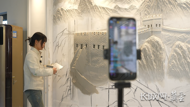 “锵!”铲刀与墙体碰撞,泥屑溅起。这声音像是她与过去生活的切割——三年前,她还是个刚从华北理工大学艺术系毕业,挤在常规求职赛道里的年轻人。直到2022年底,社交媒体上偶然看到的浮雕壁画击中了她。“我忽然明白,差的那‘一点’,是能用双手直接塑造艺术的实在感。”