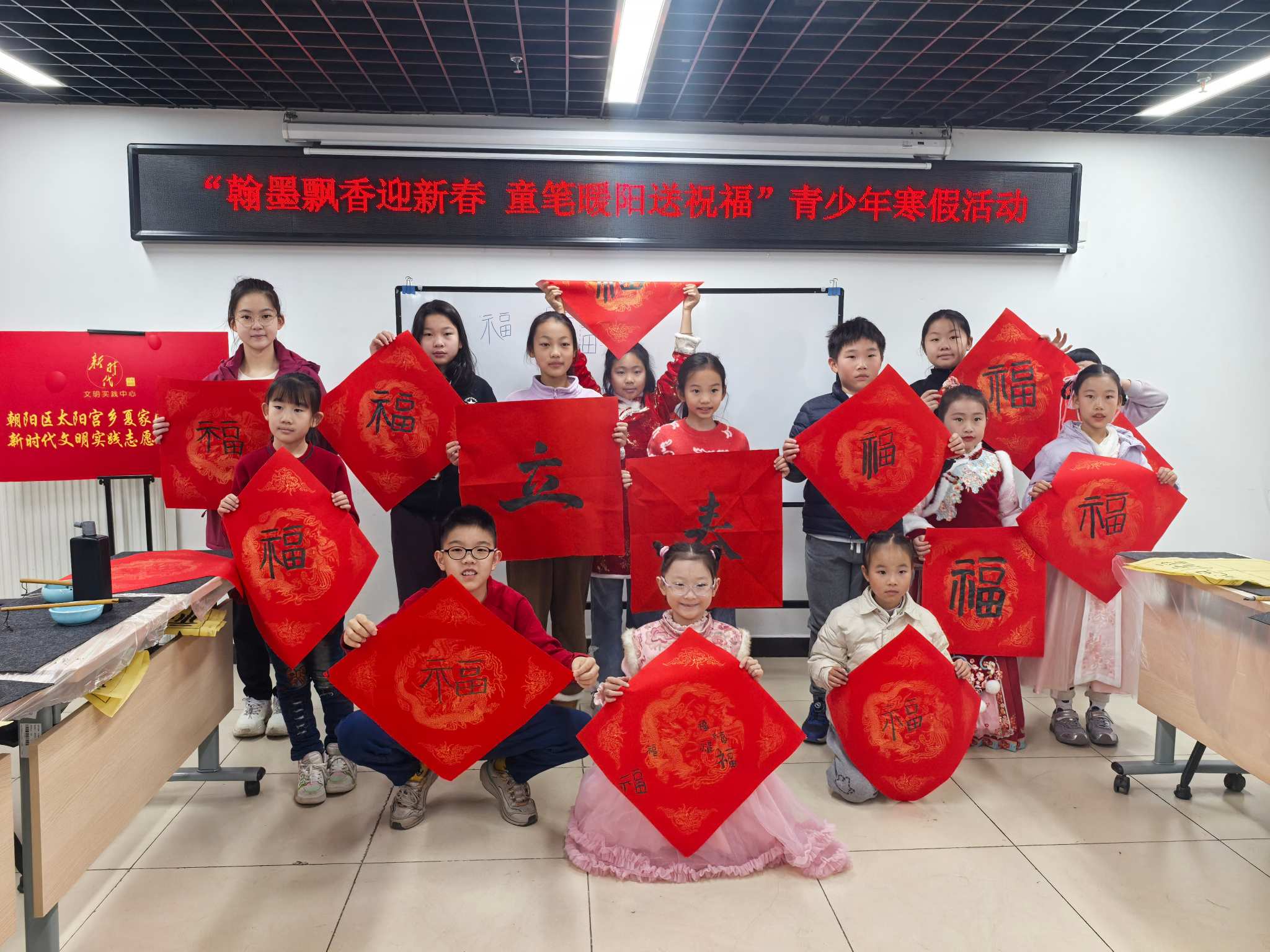 为传承中华优秀传统文化,丰富辖区青少年寒假生活,传递邻里温情与新春期许,太阳宫地区夏家园二社区精心举办了“翰墨飘香迎新春 童笔暖阳送祝福”青少年主题活动,特邀辖区共建企业汉翔书法的专业老师,与辖区青少年齐聚一堂,以笔为媒、以墨传情,共写福字、同书春联,在笔墨书香中感受传统年味,让友好之花悄然绽放,让暖阳之力温暖人心。