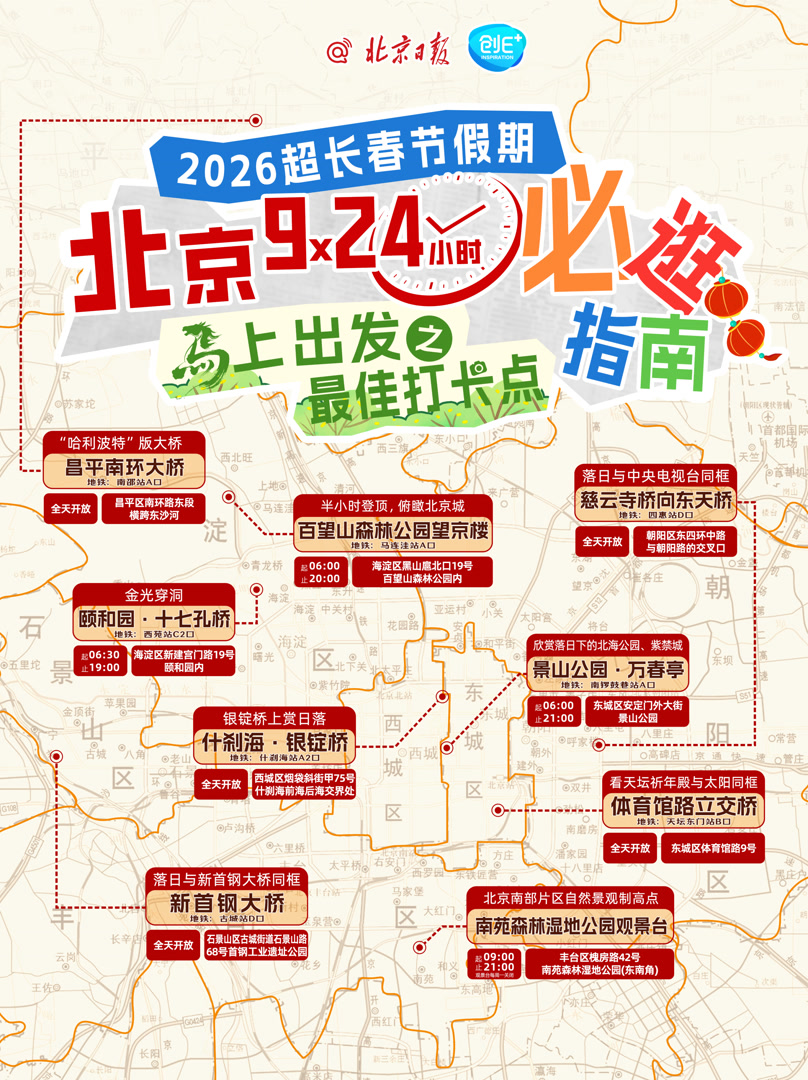 9天超长春节假期,在北京逛哪里?哪些地方最出片,哪里适合看朝霞、追落日?地点、开放时间、特色和地铁交通信息,都帮你整理好啦~