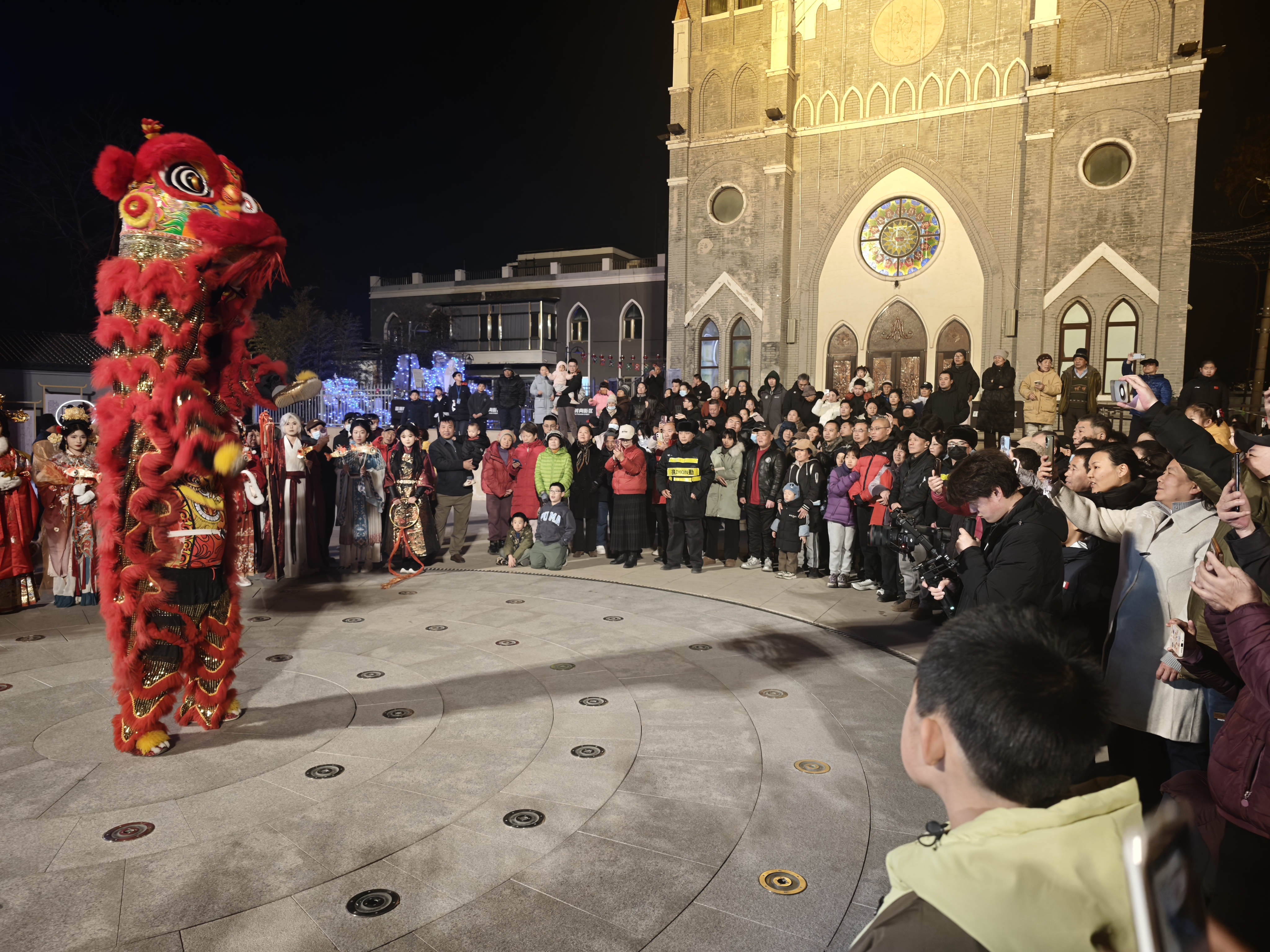 中午12点,曹家口路早已围满了翘首以盼的市民。“众神听令,列队——”随着一声号令,巡游队伍从曹家口出发,沿着长辛店老街一路向教堂广场行进。人群中,欢呼声、笑声、快门声混成一片。这是本次长辛国潮奇妙夜的“重头戏”——“仙宗巡游”。十几位“神仙 NPC”化身福、禄、寿、禧、财、月老、观音等经典吉祥形象,惊艳亮相在街区的大街小巷。