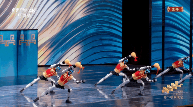 不要怀疑自己的眼睛,这其实是杭州宇树科技的机器人们,在春晚上表演节目《武BOT》中一个精彩动作。