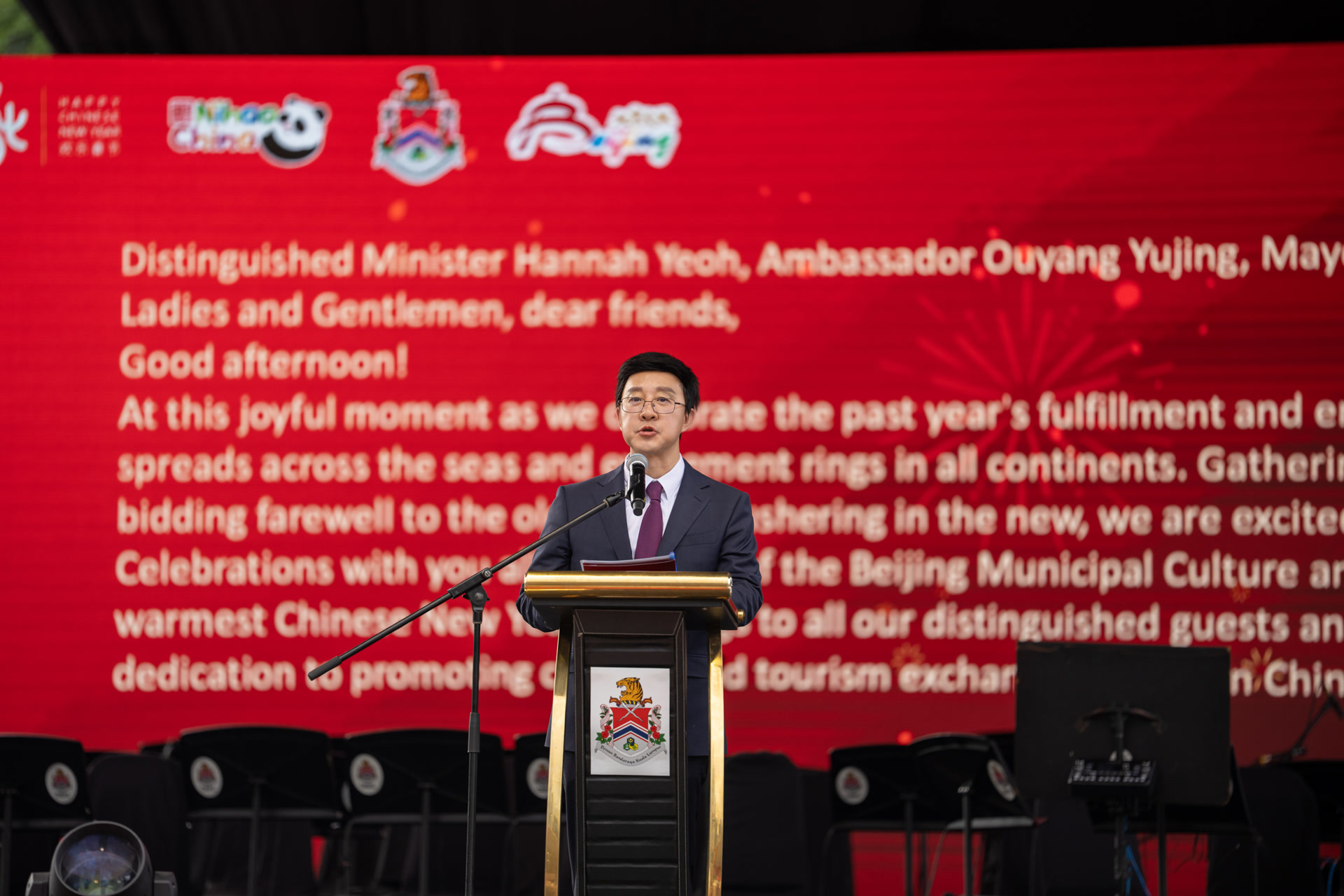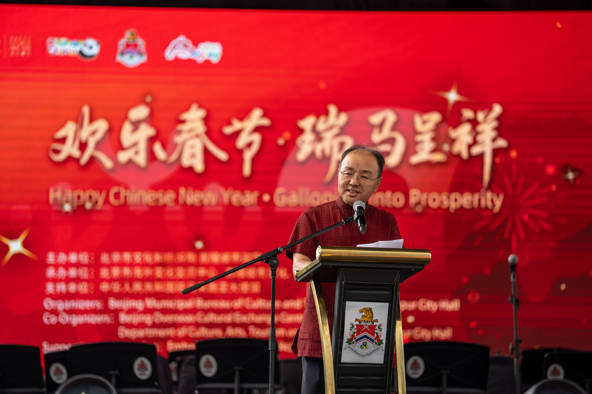 这场跨越山海的新春之约,源于去年5月在北京举办的中马旅游对话活动,活动期间吉隆坡市文化、艺术、旅游和体育局与北京市文化和旅游局签署合作意向书,共同策划在吉隆坡举办“欢乐春节”。时隔九个月,北京团组携“瑞马呈祥”主题文艺演出如约精彩亮相吉隆坡,来自中国与马来西亚的艺术家联袂登台,歌舞交融、好戏连台,与现场观众共庆佳节。马来西亚首相府部长杨巧双、中国驻马来西亚大使欧阳玉靖、吉隆坡市长拿督法伦、北京市文化和旅游局二级巡视员路斌等嘉宾出席活动,与民众一同感受京韵与南洋风情交织的独特“年味”。