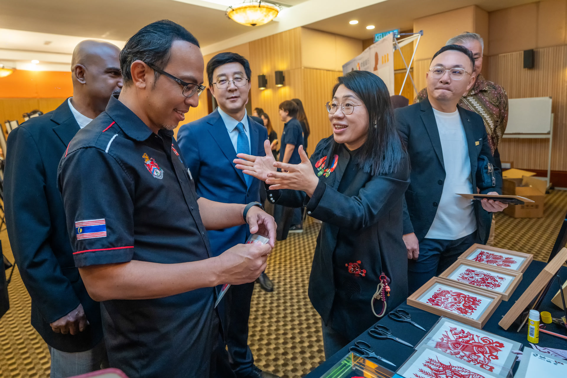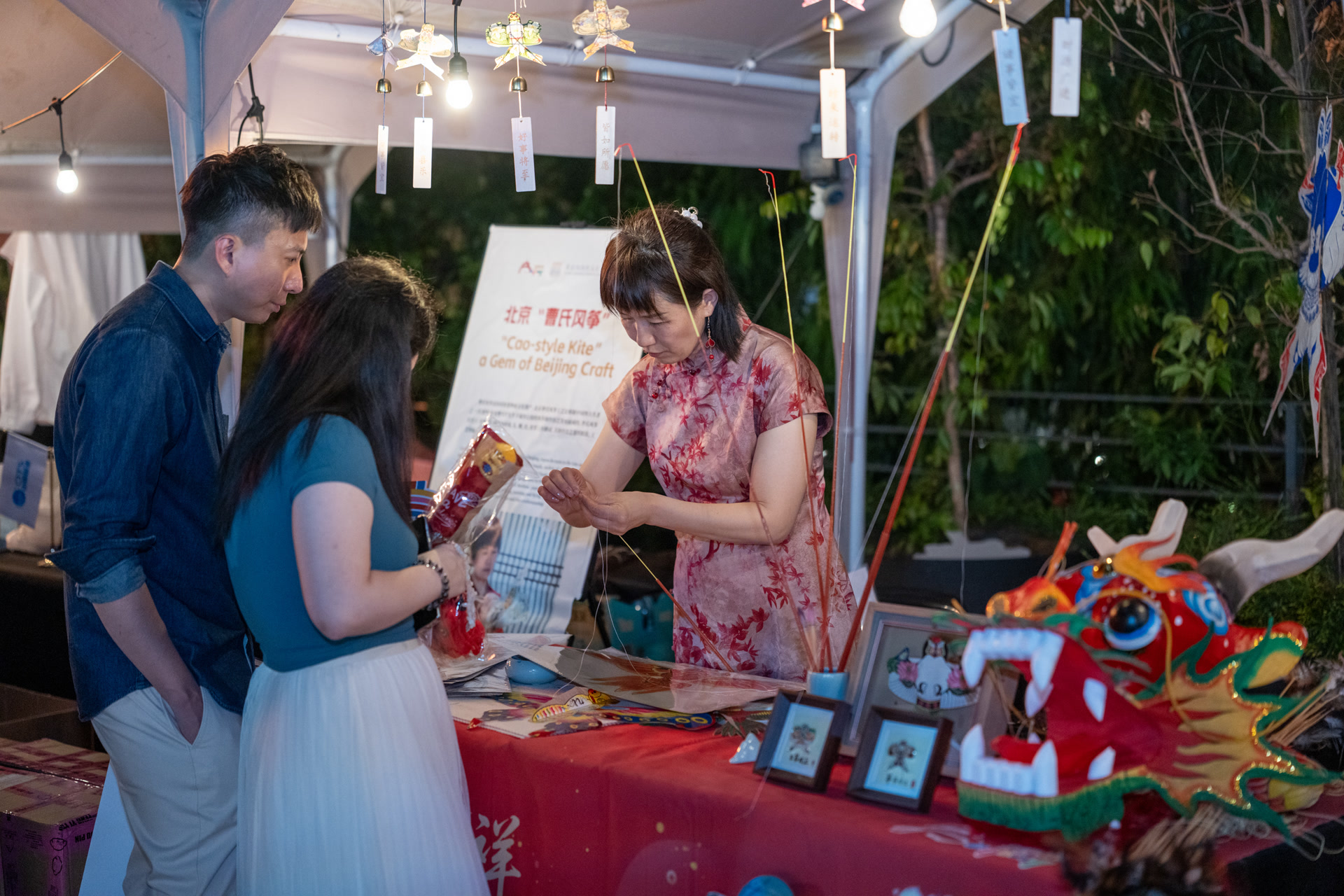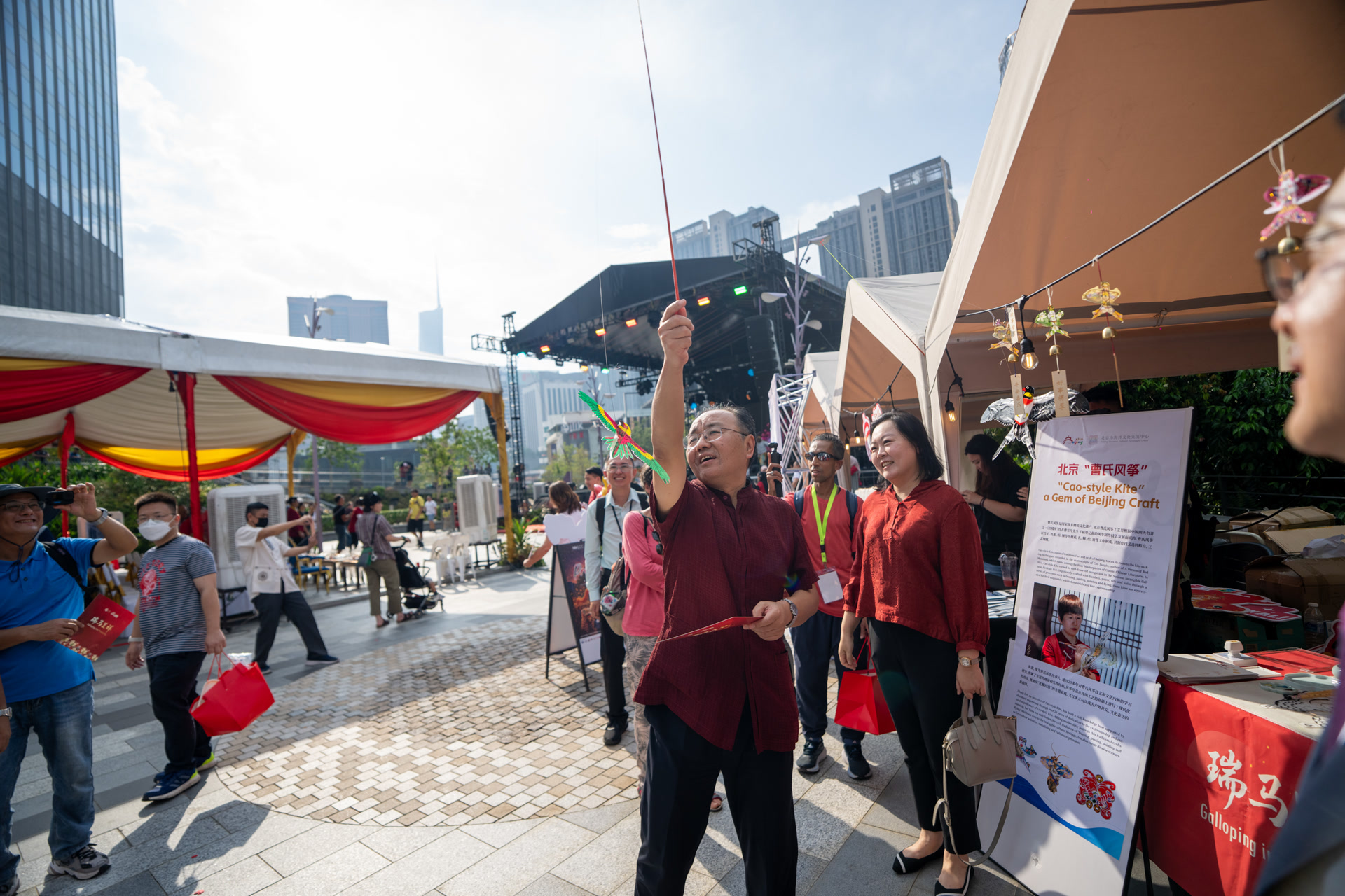 舞台之外,曹氏风筝、剪纸与吹糖人等北京非遗项目同样吸引众多民众排队体验,为吉隆坡带来触手可及的京味新春。