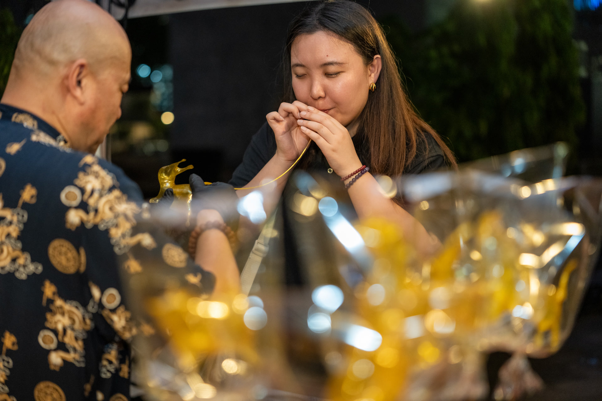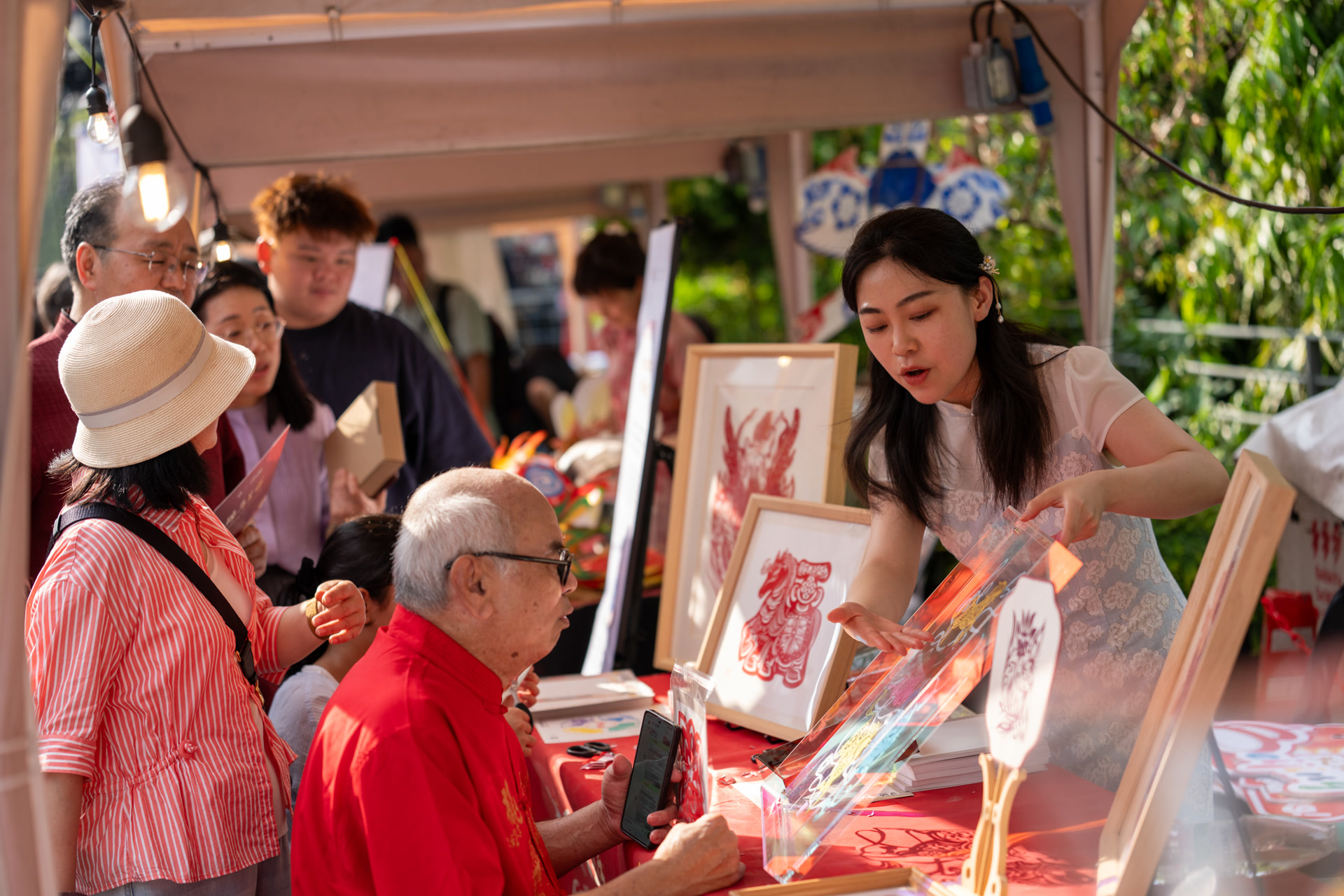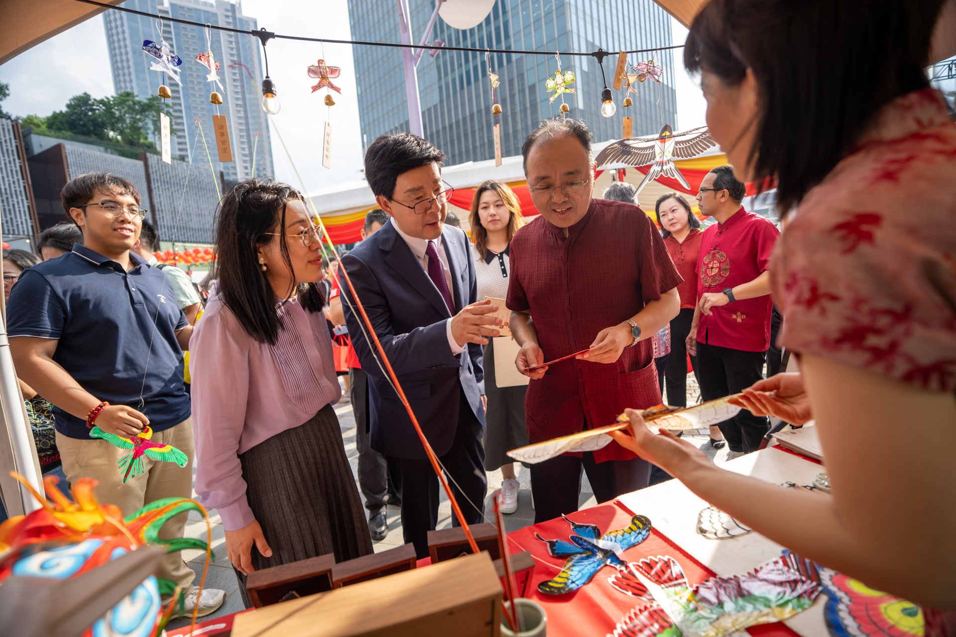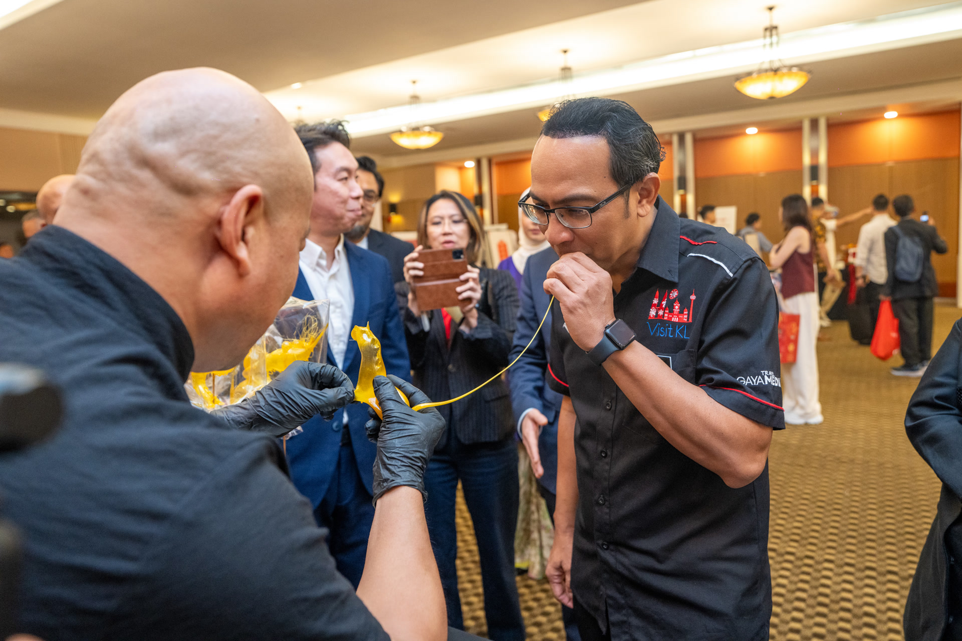 舞台之外,曹氏风筝、剪纸与吹糖人等北京非遗项目同样吸引众多民众排队体验,为吉隆坡带来触手可及的京味新春。
