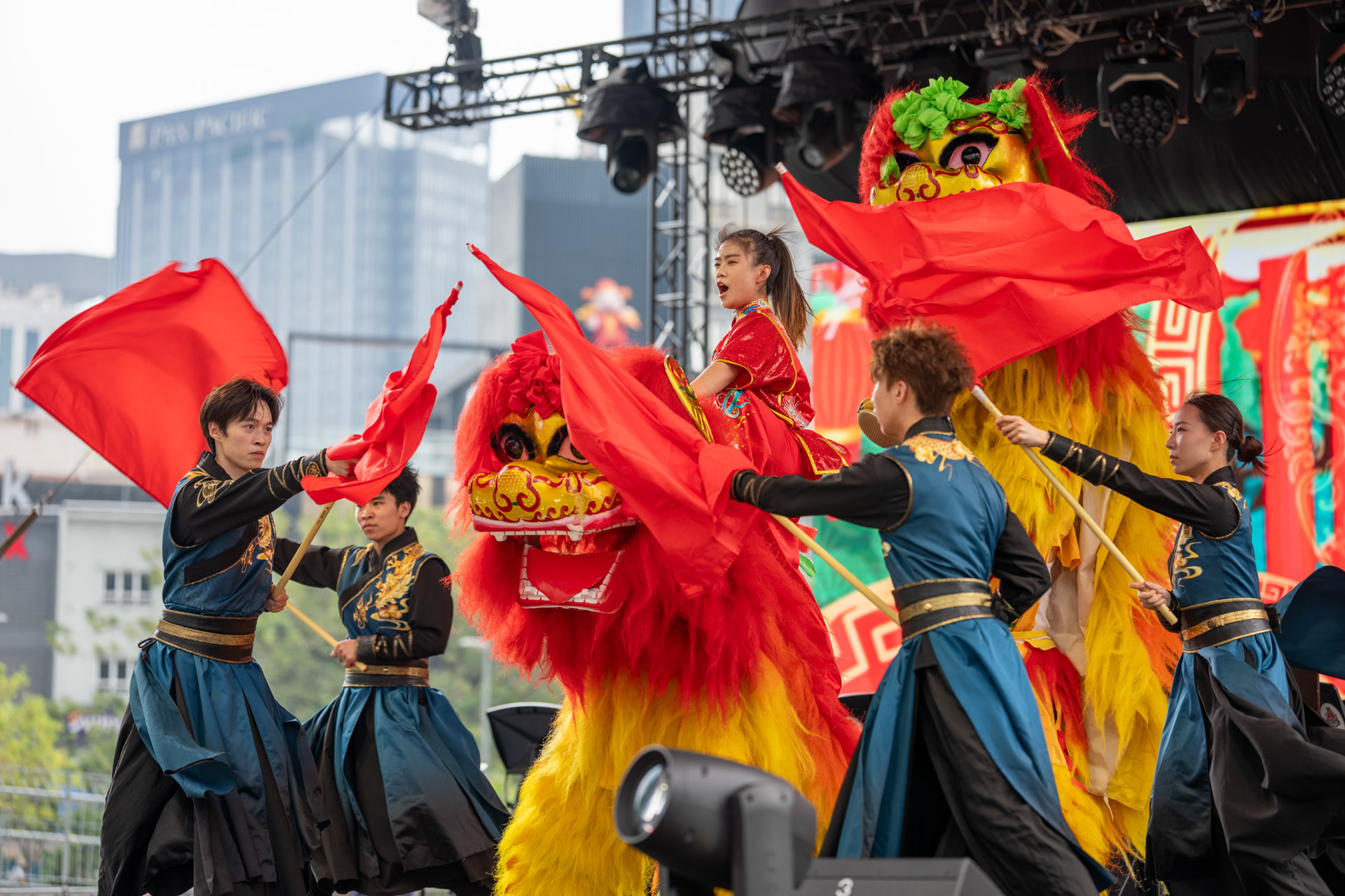 在吉隆坡核心商业区TRX广场,一场由中马两国艺术家联袂呈现的8小时文艺演出,成为当地民众争相围观的新春焦点。来自中国煤矿文工团、北京舞蹈学院、首都体育学院等院团的国家一级演员、运动健将,与马来西亚艺术家同台切磋,顶尖艺术水准的激情碰撞,让现场高潮迭起。舞台上,南狮的灵动机敏与北狮的雄健奔放交相呼应,扎宾舞以肢体语言描绘“美美与共”的动人图景。随着节目轮番登场,两国演员边演边比,表演愈发投入,现场氛围不断升温,掌声与喝彩此起彼伏。