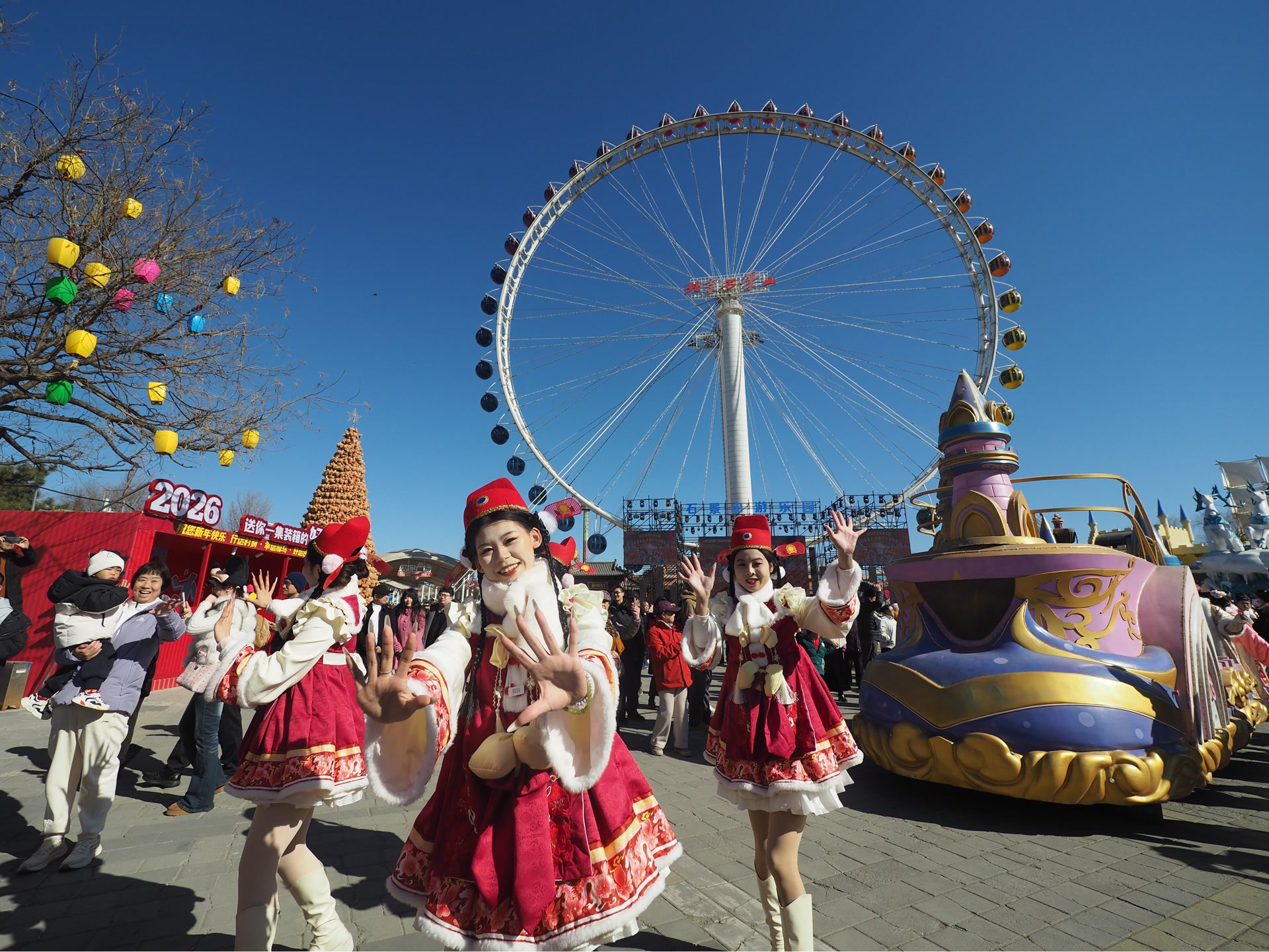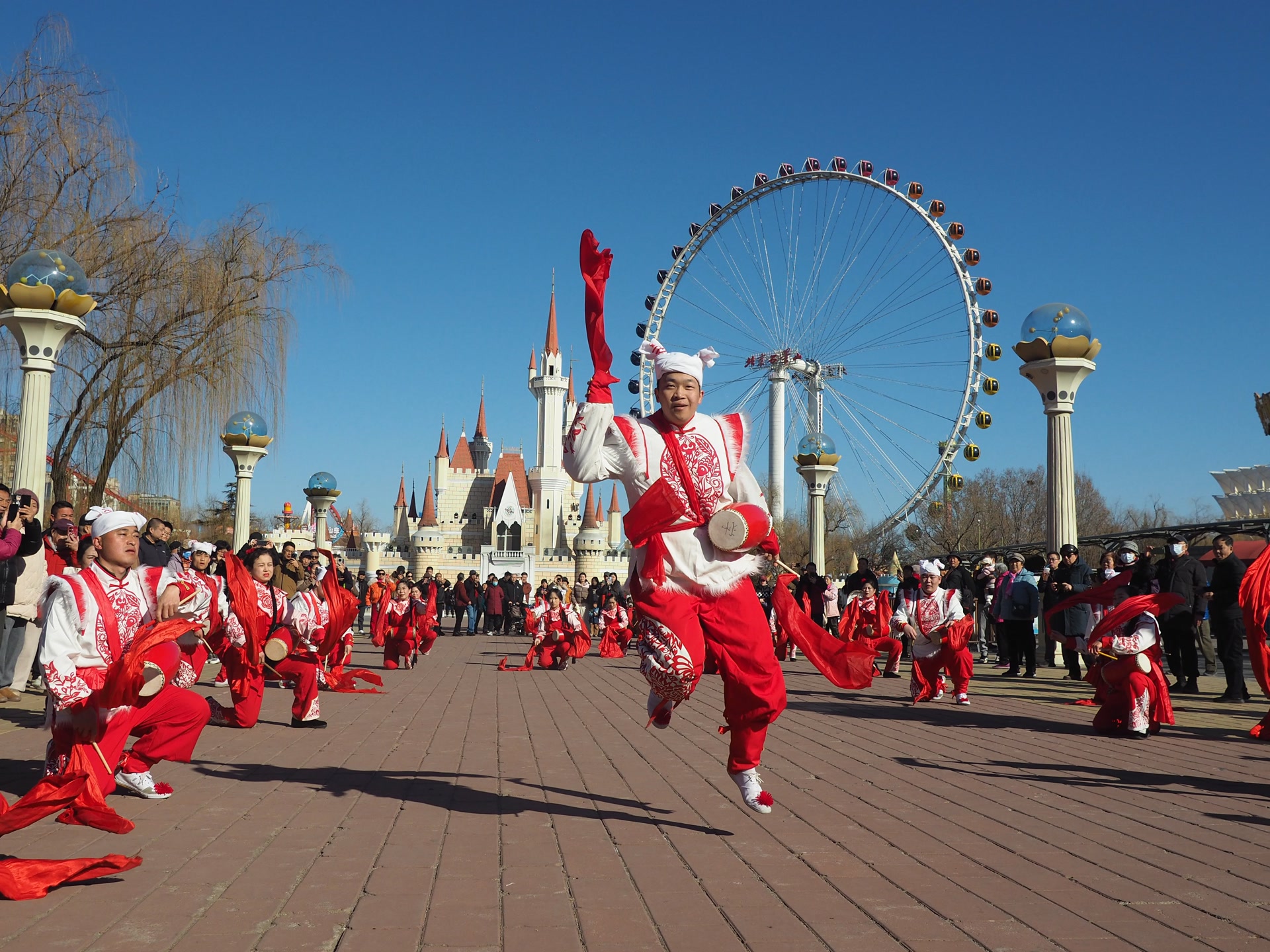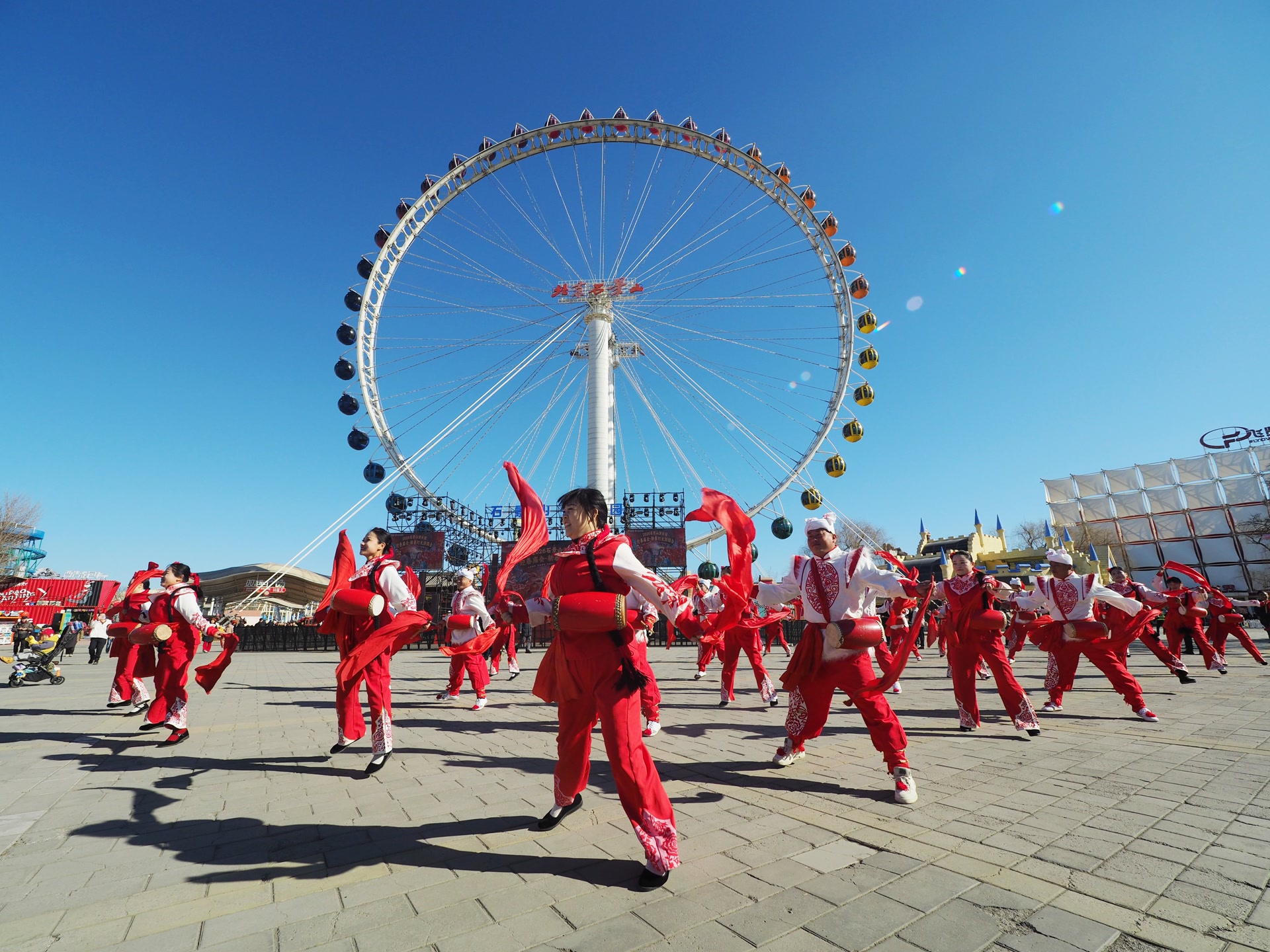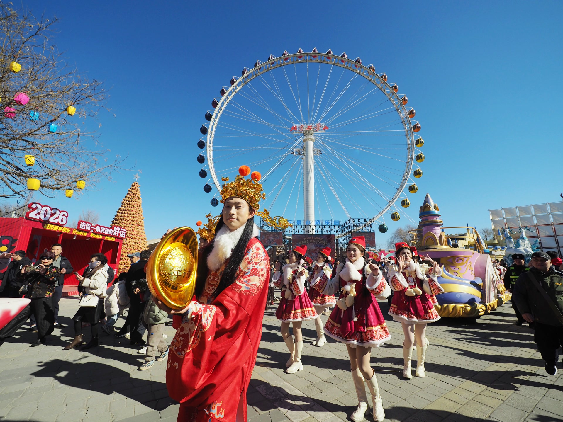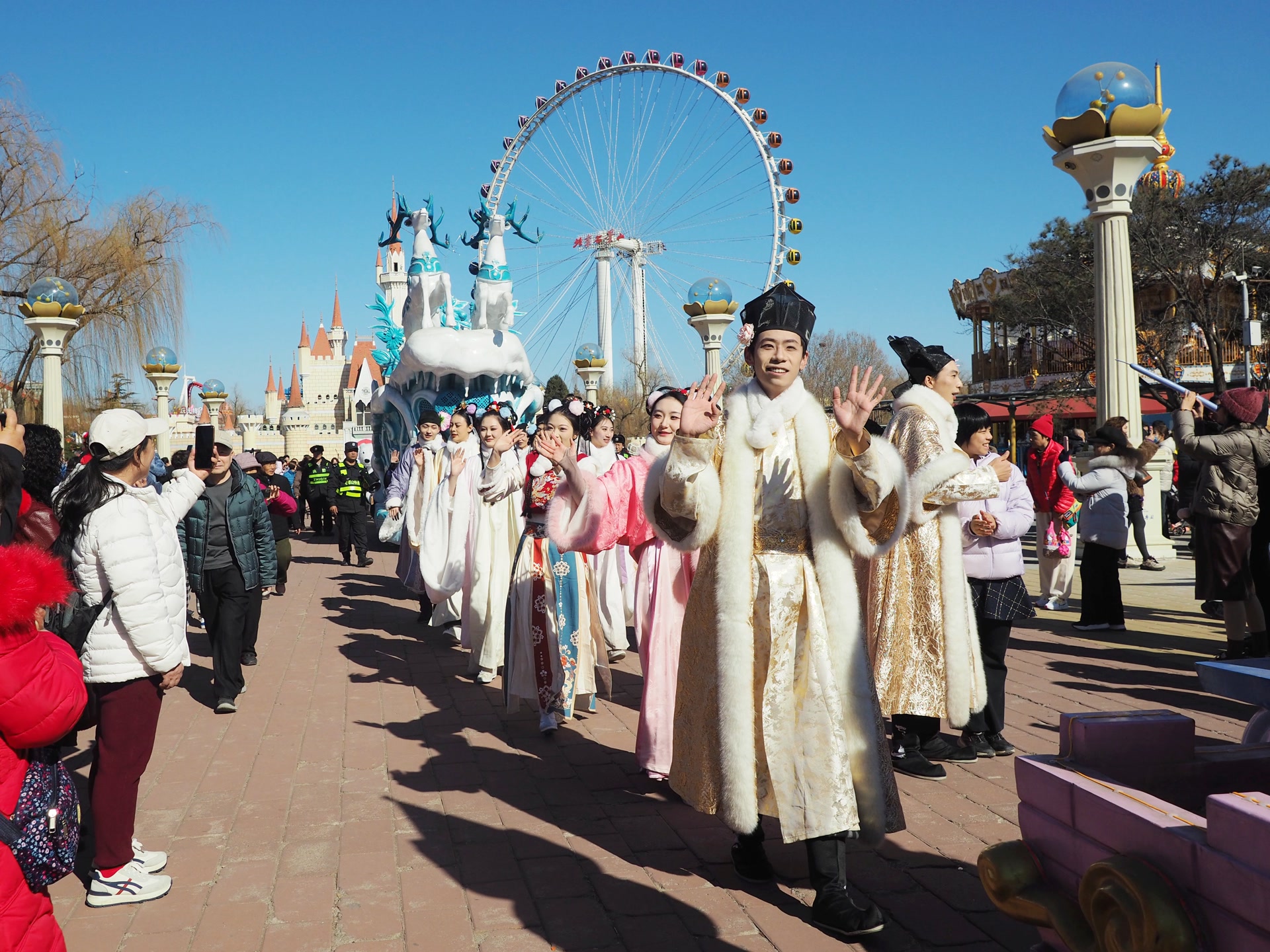 石景山游乐园迎春庙会真热闹!腰鼓表演、花车大巡游引客来