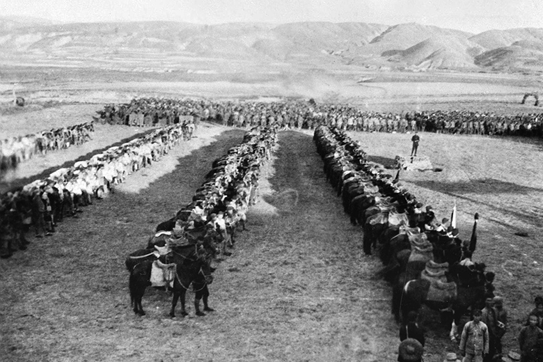 1949年10月1日,举世瞩目的开国大典在北京隆重举行。在接受检阅的队伍中,骑兵方队尤其引人瞩目。骑兵英姿飒爽,战马精神抖擞,充分展现了中国人民解放军骑兵部队的英勇风采。这永载史册的一幕,如同一把钥匙,打开了中国革命征程中人马相依、共赴国难的壮阔史诗,让我们得以探寻马在烽火岁月中扮演的多重角色,感受其融入革命血脉的精神力量。